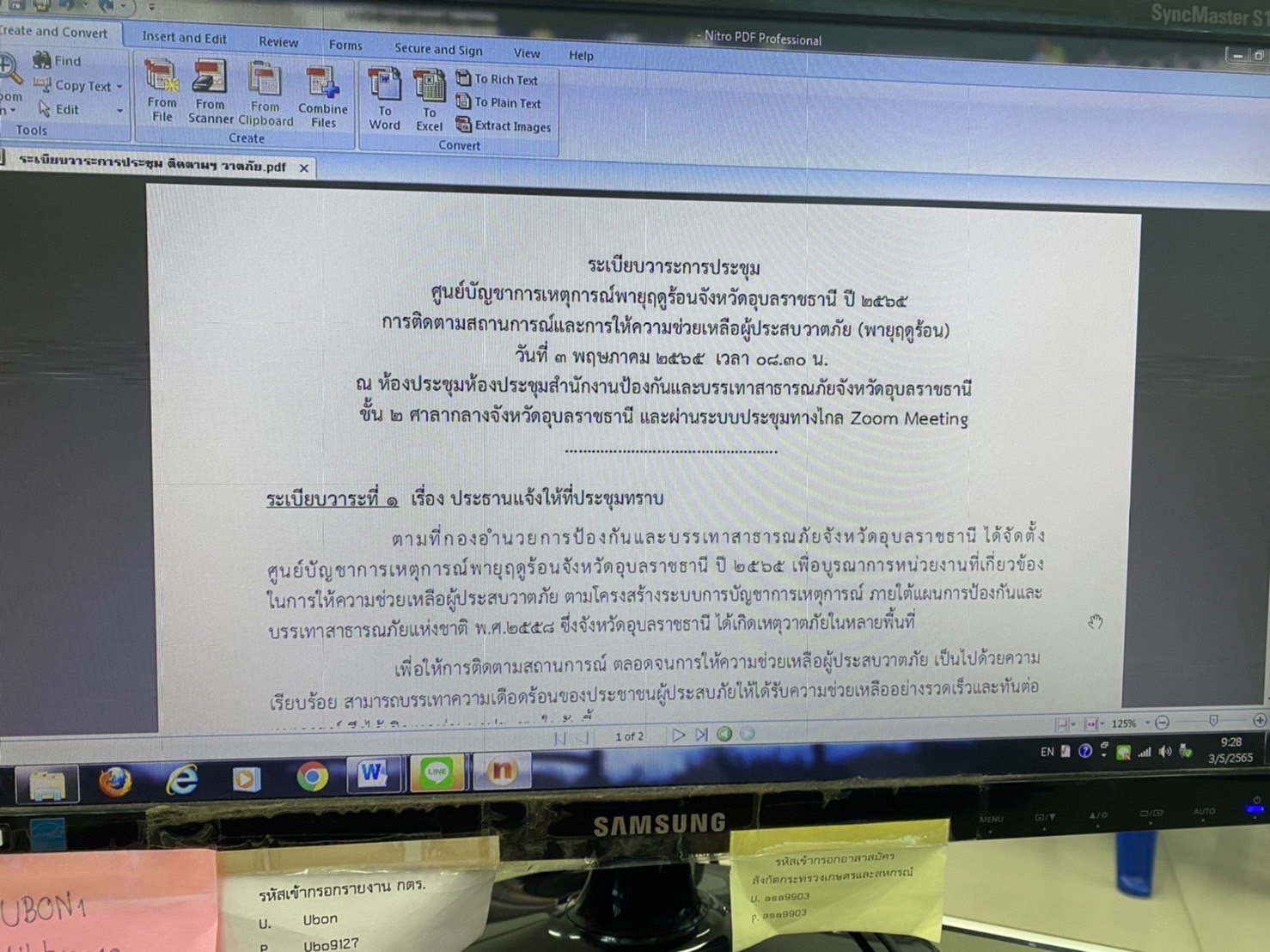 เวลา 08.30 น. นายศุภกิตติ์  ใสกระจ่าง  ประมงจังหวัดอุบลราชธานี มอบหมายให้นายสุวิทย์  พัชนี นักวิชาการประมง กลุ่มบริหารจัดการด้านการประมง ร่วมประชุมการติดตามสถานการณ์และการให้ความช่วยเหลือผู้ประสบวาตภัย (พายุฤดูร้อน) ตลอดจนแนวทางการให้ความช่วยเหลือเป็นไปด้วยความเรียบร้อย ผ่านระบบประชุมทางไกล Zoom  Meeting  โดยมีนายวิรุจ  วิชัยบุญ  รองผู้ว่าราชการจังหวัดอุบลราชธานี เป็นประธาน