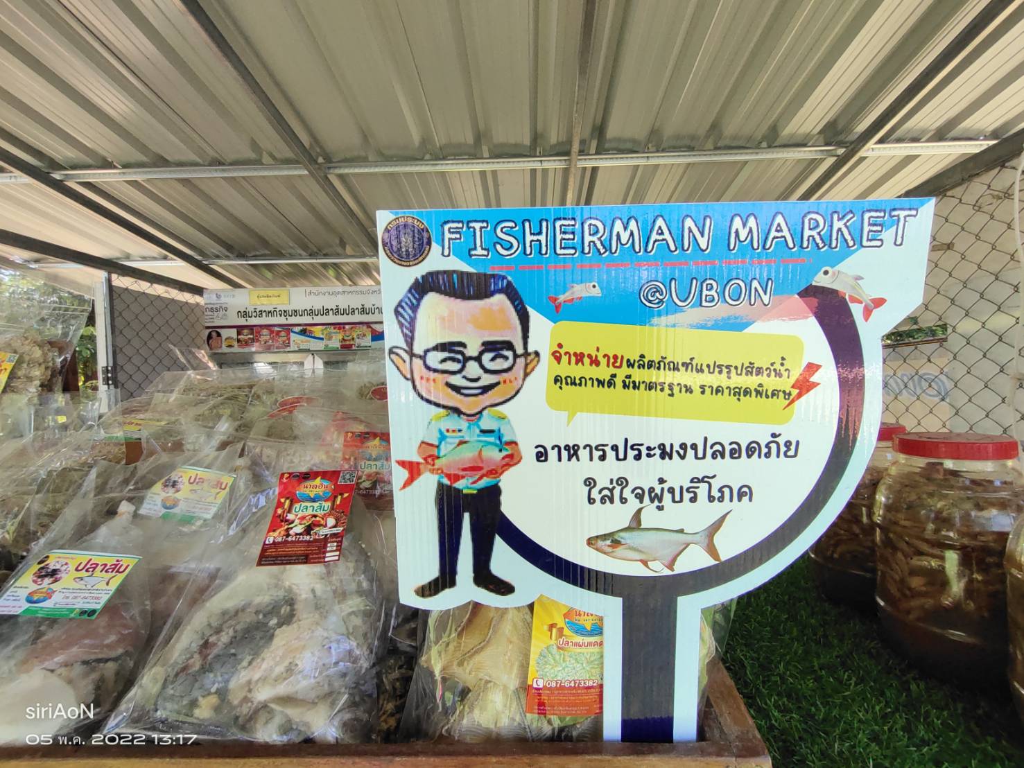วันนี้ (5 พฤษภาคม 2565) นายศุภกิตติ์ ใสกระจ่าง ประมงจังหวัดอุบลราชธานี พร้อมด้วยนายประชุม ดวนใหญ่ หัวหน้ากลุ่มพัฒนาและส่งเสริมอาชีพการประมง บูรณาการร่วมกับนางสาวกานต์รวี รักผล ประมงอำเภอสิรินธร และเจ้าหน้าที่กลุ่มพัฒนาและส่งเสริมอาชีพฯ ร่วมเปิดร้านค้า Fisherman Shop @สิรินธร เพื่อสร้างช่องทางกระจายผลิตภัณฑ์ และสินค้าประมง สู่ผู้บริโภค ณ บริเวณหน้าอาคารแปรรูปวิสาหกิจชุมชนกลุ่มปลาส้มบ้านคำกลาง 96 หมู่ที่ 4 ตำบลฝางคำ อำเภอสิรินธร จังหวัดอุบลราชธานี