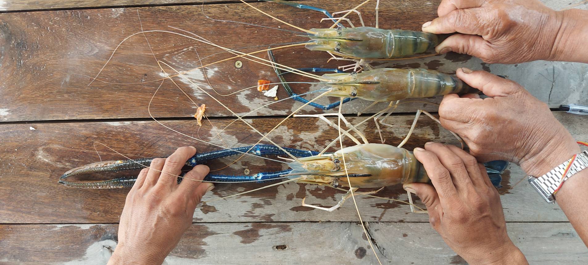 ประมงอำเภอสว่างวีระวงศ์ ลงพื้นที่สอบถามข้อมูลการจับกุ้งก้ามกราม ในแม่น้ำมูล ของชาวประมงในพื้นที่อำเภอสว่างวีระวงศ์ จังหวัดอุบลราชธานี