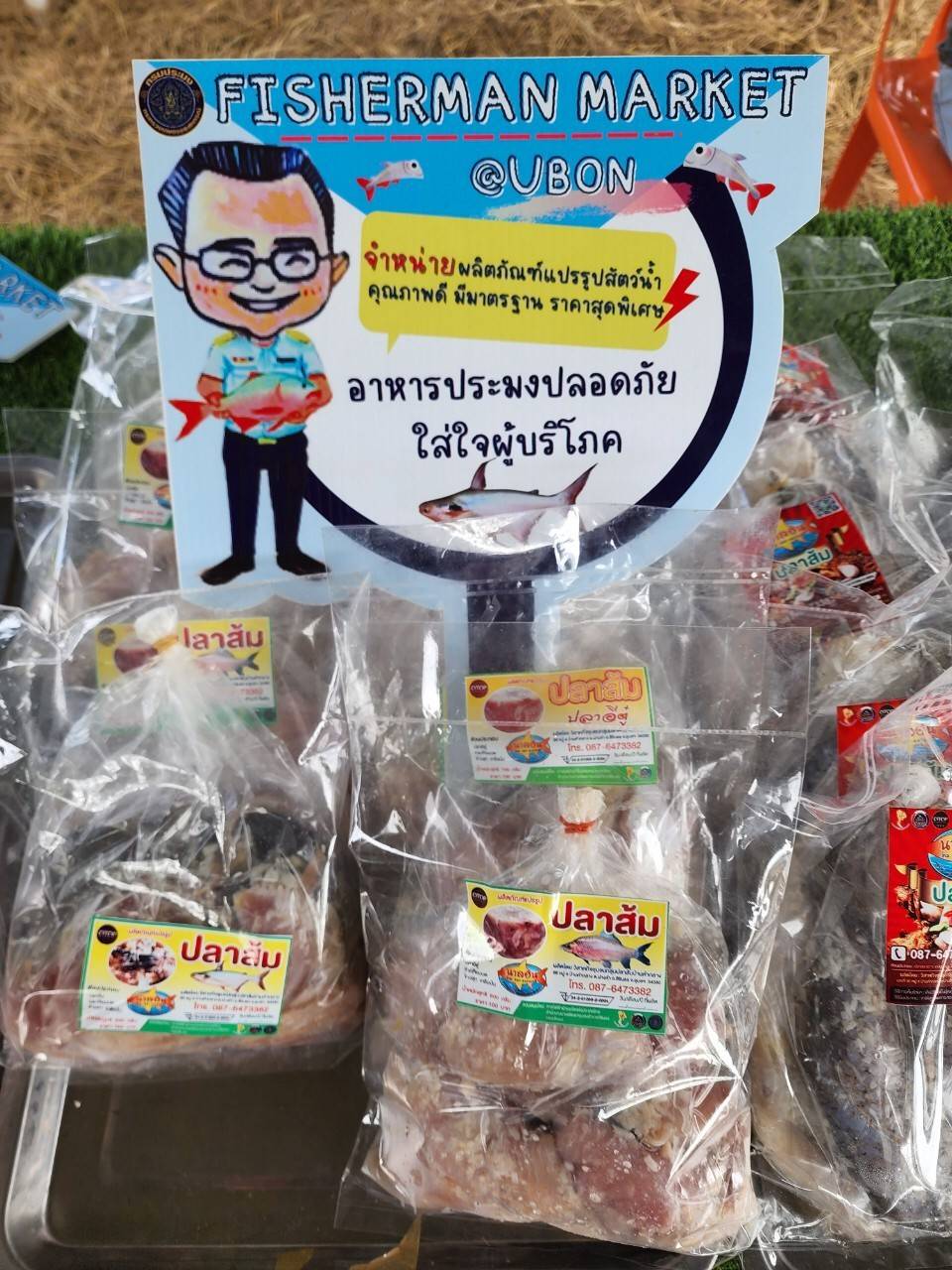 ซึ่งในงานวันนี้ “วิสาหกิจชุมชนกลุ่มปลาส้มบ้านคำกลาง” จากอำเภอสิรินธร จังหวัดอุบลราชธานี และเป็นกลุ่มฯ ที่ชนะเลิศรางวัลสถาบันเกษตรกรดีเด่นแห่งชาติ สาขาการแปรรูปสัตว์น้ำ ประจำปี 2565 นำผลิตภัณฑ์ที่มีคุณภาพ ผ่านการรับรองมาตรฐานมาจำหน่ายในงานด้วย อาทิเช่น  ปลาแก้วแห้ง ปลาส้มปลาตะเพียน ปลาส้มปลาเทโพ (ปลาปึ่ง) ปลาส้มปลากาดำ (ปลาอีตู๋) ปลาส้มปลาตองกราย และปลาแผ่นแดดเดียว ซึ่งเป็นผลิตภัณฑ์ที่มีความปลอดภัย และถูกสุขลักษณะ