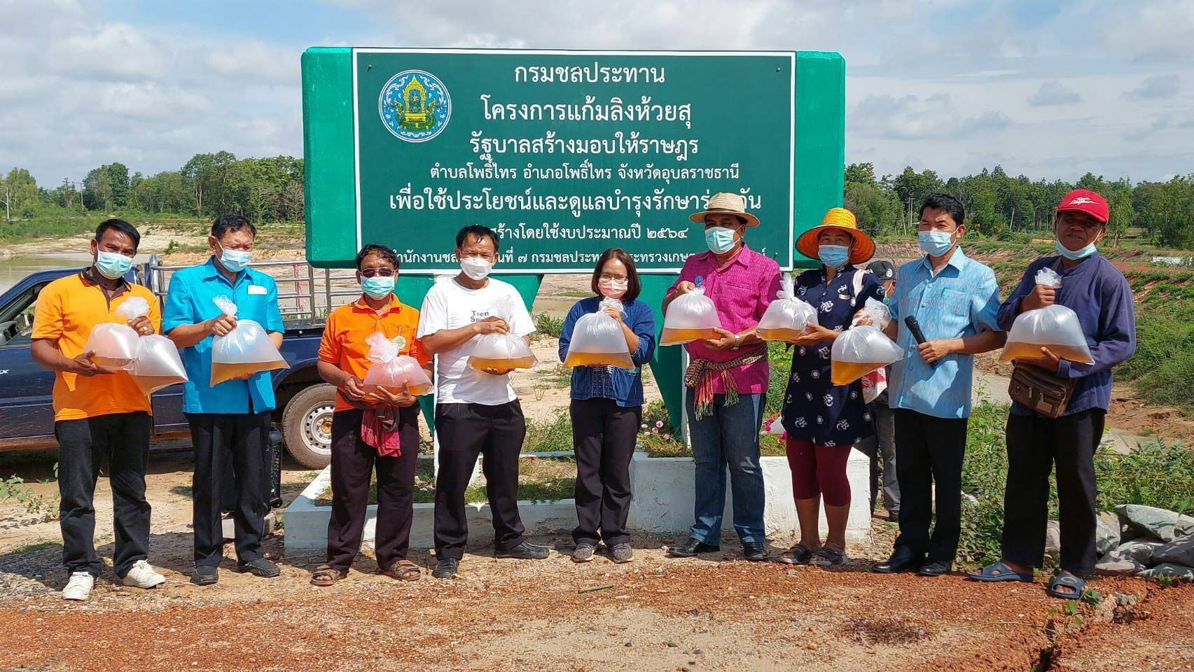 ประมงอำเภอโพธิ์ไทร ร่วมปล่อยพันธุ์กุ้งก้ามกาม จำนวน 100,000 ตัว ณ  แก้มลิงห้วยสุ/อ่างเก็บน้ำโป่งเป้า/ห้วยขัดไหล่