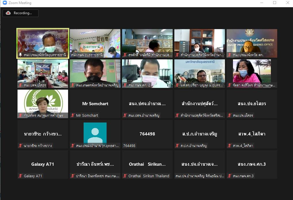 วันนี้ 24 พฤษภาคม 2565 เวลา 13.30 น. นายศุภกิตติ์ ใสกระจ่าง ประมงจังหวัดอุบลราชธานี พร้อมด้วย นายประชุม ดวนใหญ่ หัวหน้ากลุ่มพัฒนาและส่งเสริมอาชีพการประมง และนางเพชรรัตน์ สมเสนาะ หัวหน้ากลุ่มบริหารและยุทธศาสตร์ เข้าร่วมประชุมคณะอนุกรรมการร่วมภาครัฐและเอกชนเพื่อแก้ไขปัญหาทางเศรษฐกิจกลุ่มจังหวัด (กรอ.กลุ่มจังหวัด) ด้านการเกษตรและอาหาร ผ่านระบบ True Vroom ณ ห้องประชุม สนง.จังหวัดอุบลราชธานี