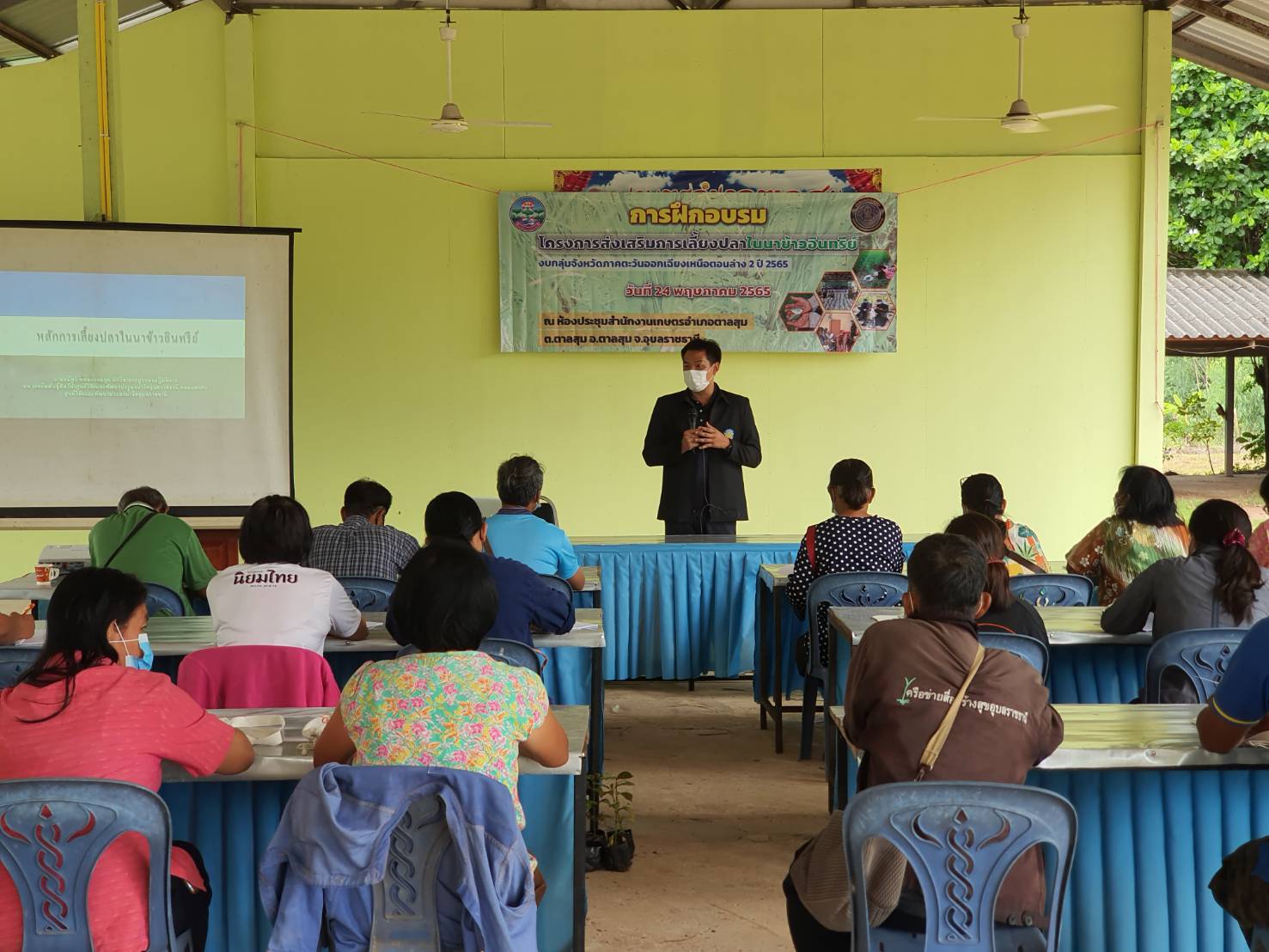 สำนักงานประมงจังหวัดฯ จัดอบรมโครงการส่งเสริมการเลี้ยงปลาในนาข้าวอินทรีย์ รุ่นที่ 2 ประจำปีงบประมาณ 2565