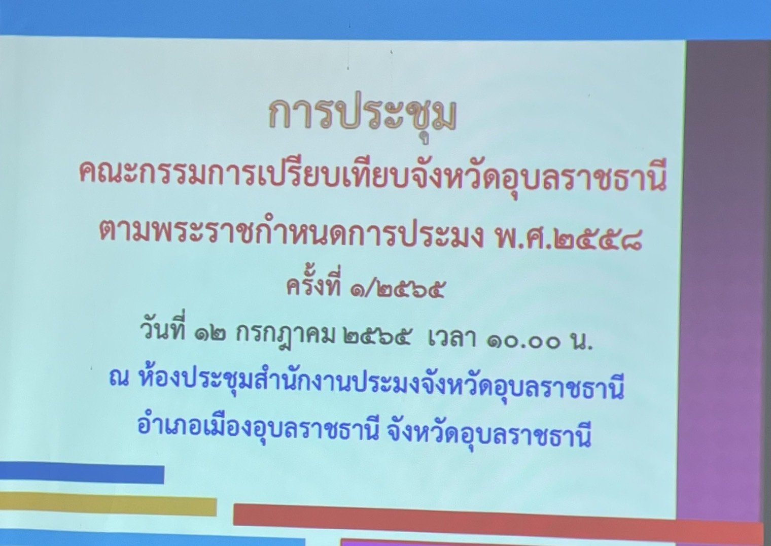 ประชุมคณะกรรมการเปรียบเทียบจังหวัดอุบลราชธานี ตามพระราชกำหนดการประมง พ.ศ. 2558 ณ ห้องประชุมสำนักงานประมงจังหวัดอุบลราชธานี โดยมีนางศิริพร  สังวรณ์ อัยการจังหวัดอุบลราชธานี เป็นประธาน