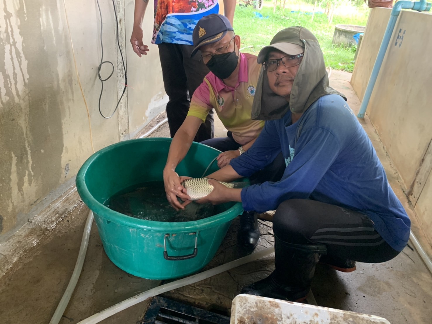 ทีมประมงอุบลราชธานี ร่วมบูรณาการปฏิบัติงานโครงการตามพระราชดำริสมเด็จพระนางเจ้าสิริกิติ์ พระบรมราชินีนาถ บรมราชชนนีพันปรหลวง (ฟาร์มตัวอย่างบ้านยางน้อย) จัดเตรียมพ่อแม่พันธุ์ปลาตะเพียนขาวดำเนินการเพาะพันธุ์ รุ่นที่ 3