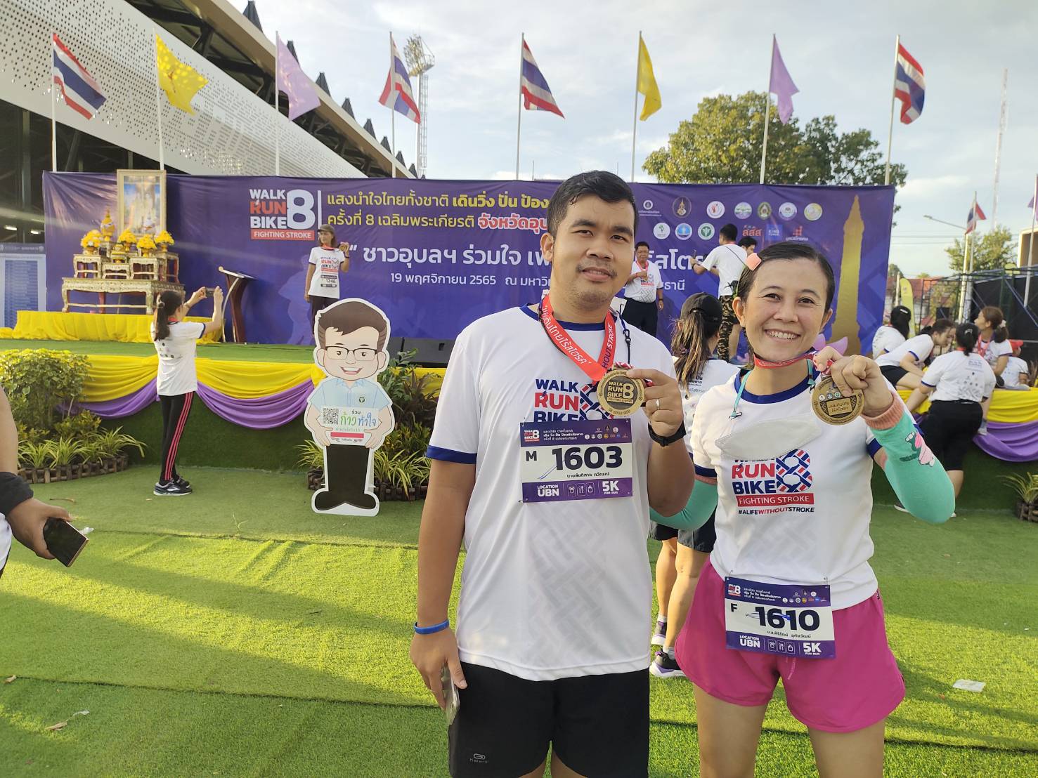 วันนี้ (19 พ.ย. 2565) นางเพชรรัตน์ สมเสนาะ หัวหน้ากลุ่มบริหารยุทธศาสตร์ นำทีมข้าราชการ พนักงานราชการ ลงวิ่ง ภายใต้กิจกรรม WALK RUN BIKE 8 FIGHTING STROKE แสงนำใจ ไทยทั้งชาติ เดิน วิ่ง ปั่น ป้องกันอัมพาตครั้งที่ 8 เฉลิมพระเกียรติ ณ จุด Start มหาวิทยาลัยราชภัฏอุบลราชธานี