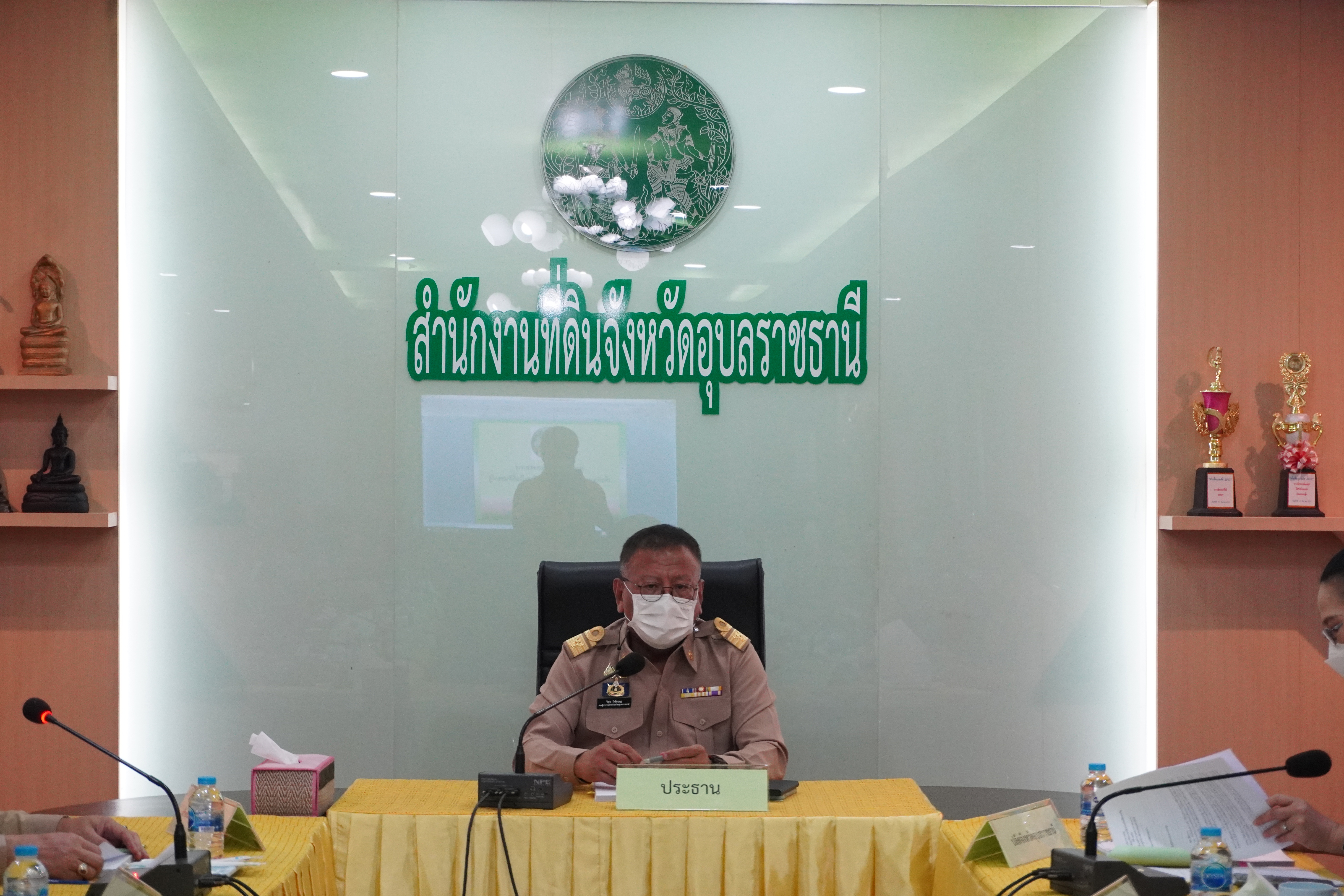 โดยที่ประชุมมีมติเห็นควรให้ต่อหนังสืออนุญาตให้แก่ผู้ครอบครองและทำประโยชน์ในที่ดินตนเอง ไม่ได้เปลี่ยนผู้ครอบครอง และผู้ได้รับอนุญาตเดิมถึงแก่กรรมโดยทายาทเป็นผู้ครอบครองและทำประโยชน์แทน ดังนี้  1) ที่ดินแปลง “ที่เลี้ยงสัตว์สาธารณประโยชน์” บ้านโนนสังข์ หมู่ที่ 3  ตำบลโนนสวาง อำเภอกุดข้าวปุ้น จังหวัดอุบลราชธานี เนื้อที่  2,323-1-11 ไร่   ผู้ได้รับการต่อหนังสืออนุญาต จำนวน 299 ราย 2) ที่ดินแปลง “ทำเลเลี้ยงสัตว์” บ้านหนองแวง หมู่ที่ 13  ตำบลโนนสวาง อำเภอกุดข้าวปุ้น จังหวัดอุบลราชธานี เนื้อที่  951-3-01 ไร่   ผู้ได้รับการต่อหนังสืออนุญาต จำนวน 121 ราย 3) ที่ดินแปลง “โนนสนามม้า” บ้านโนนวัฒนา หมู่ที่ 16  ตำบลพังเคน อำเภอนาตาล จังหวัดอุบลราชธานี เนื้อที่  25-2-84 ไร่   ผู้ได้รับการต่อหนังสืออนุญาต จำนวน 21 ราย ณ ห้องประชุมสำนักงานที่ดินจังหวัดอุบลราชธานี โดยมี นายวิรุจ วิชัยบุญ รองผู้ว่าราชการจังหวัดอุบลราชธานี เป็นประธานการประชุม