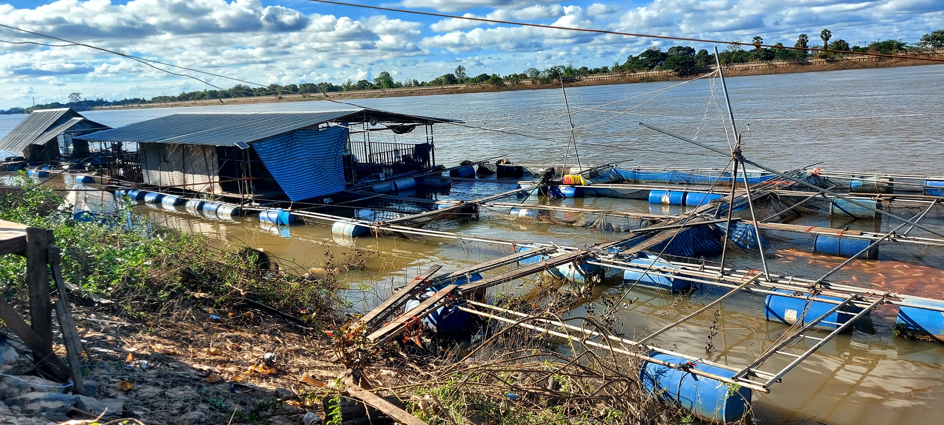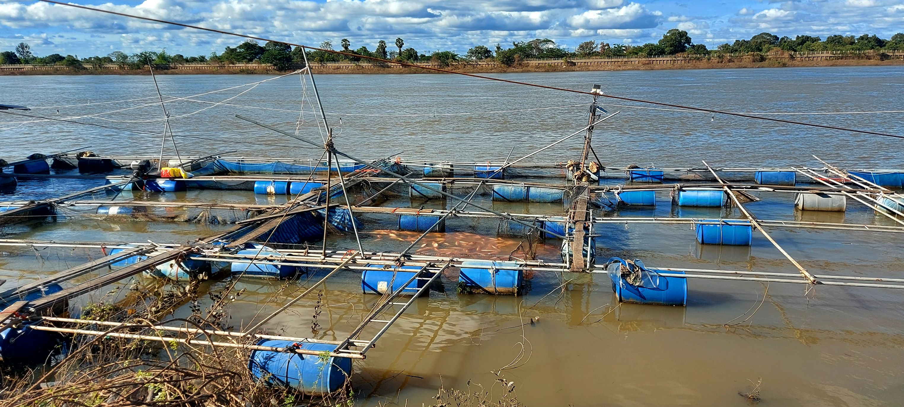 ตรวจสอบความเสียหายของเกษตรกรที่ได้รับผลกระทบจากอุทกภัย มู่หลาน โดยตรวจสอบความเสียหายกระชังปลา ในพื้นที่ ม.5 ต.คำน้ำแซบ อ.วารินชำราบ จังหวัดอุบลราชธานี
