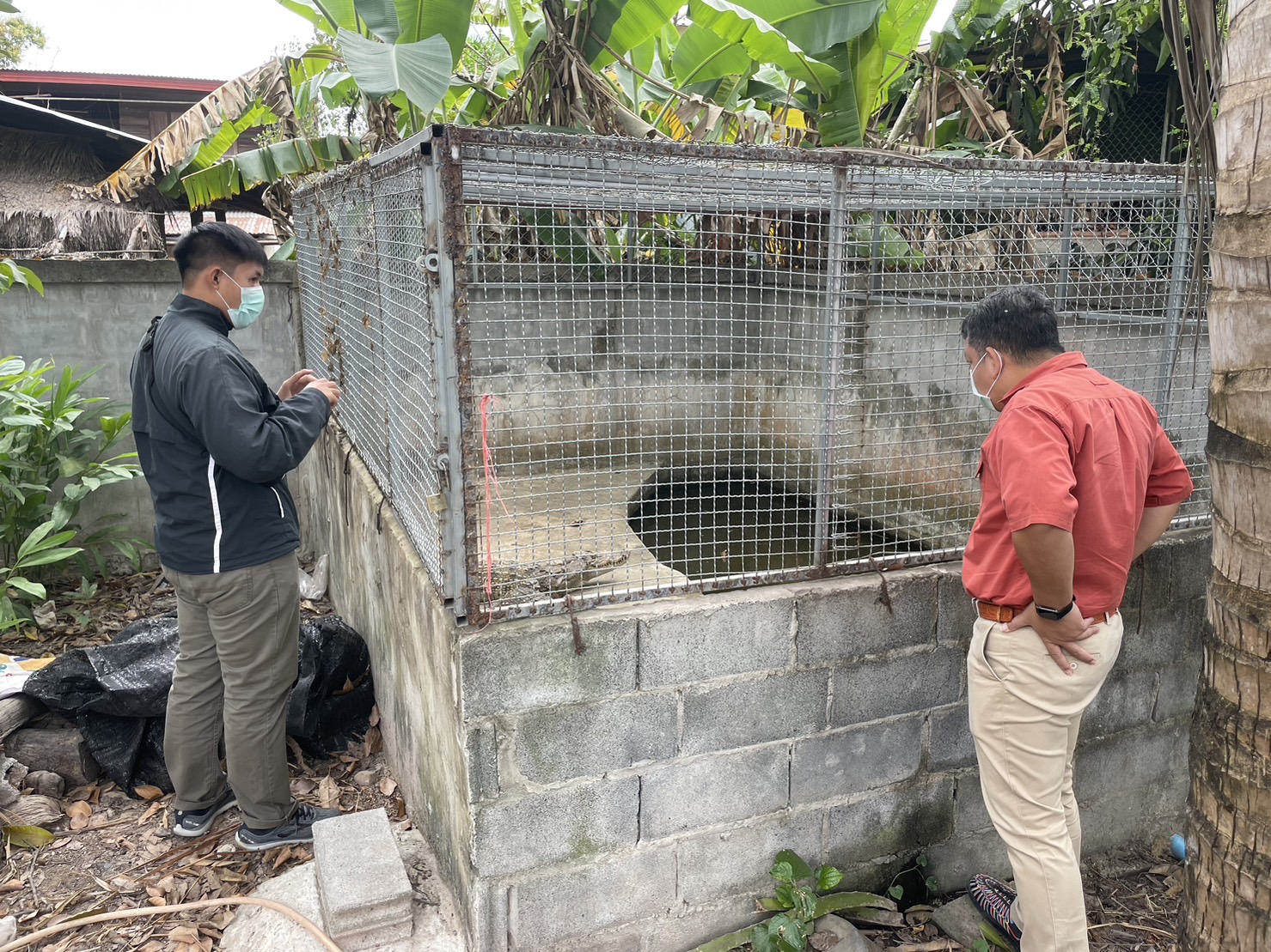 โดยขออนุญาตเพิ่มจำนวนการครอบครองจำนวน 3 ตัว และจากการตรวจสอบพบว่ามีจะเข้จำนวน 2 ตัว มีขนาดความยาวประมาณ 130 cm และจระเข้ตายจำนวน 1 ตัว ซึ่งได้ทำลายโดยการฝังกลบดินเรียบร้อย