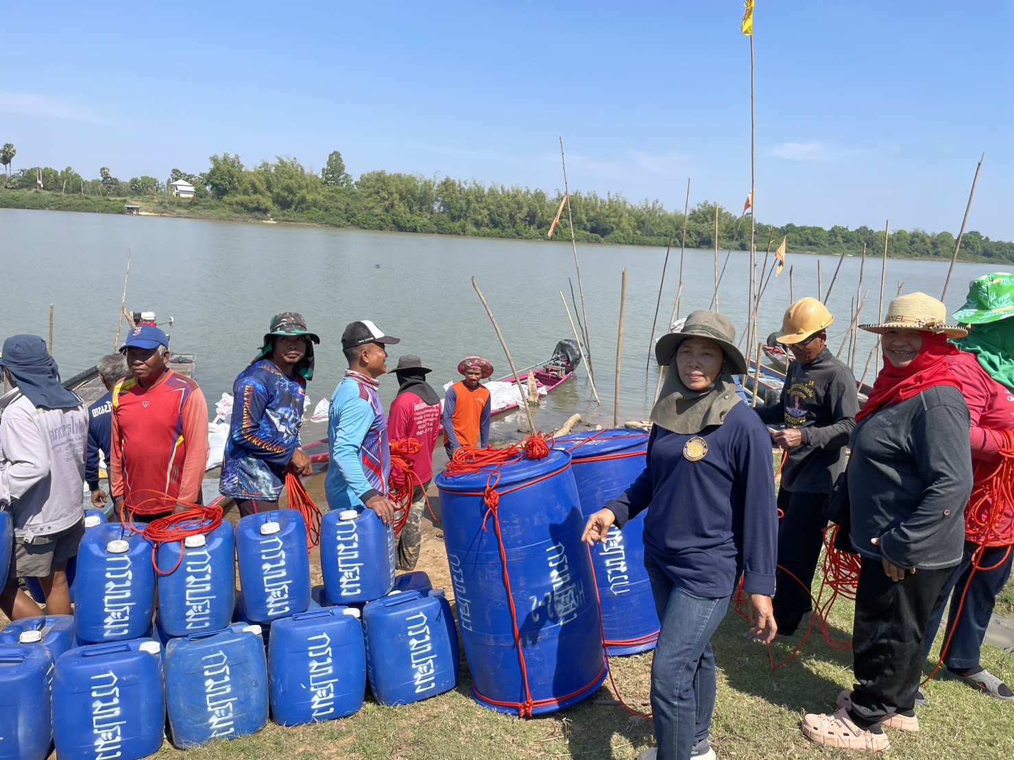 นางสาวศศิวภรณ์  ถวิลการ เจ้าพนักงานประมงปฏิบัติงาน กลุ่มบริหารจัดการด้านการประมง พร้อมด้วยนางสุภาพร  วัฒนสิทธิ์ ประมงอำเภอวารินชำราบ และนาศุภกิจ  คำแก้ว หัวหน้าหน่วยป้องกันและปราบปรามประมงน้ำจืดเขื่อนปากมูล (อุบลราชธานี) ร่วมบรูณาการทำงานกับองค์กรชุมชนประมงท้องถิ่นกลุ่มประมงตำบลหนองกินเพล และชาวบ้านหนองกินเพล อำเภอวารินชำราบ จังหวัดอุบลราชธานี ดำเนินการทำงานตามแผนปฏิบัติงานโครงการสร้างความเข้มแข็งกลุ่มการผลิตด้านประมง (กิจกรรมสร้างความเข้มแข็งกลุ่มการผลิตด้านประมง) ประจำปีงบประมาณ พ.ศ. 2566 กิจกรรมเพิ่มผลผลิตสัตว์น้ำ โดยการจัดทำและวางทุ่นแสดงแนวเขตอนุรักษ์พันธุ์สัตว์น้ำในชุมชน ณ บริเวณแม่น้ำมูล หมู่ที่ 8 บ้านหนองกินเพล ตำบลหนองกินเพล อำเภอวารินชำราบ จังหวัดอุบลราชธานี เพื่อเป็นแหล่งอนุรักษ์พันธุ์สัตว์น้ำในแม่น้ำมูลและฟื้นฟูให้มีความอุดมสมบูรณ์ของทรัพยากรสัตว์น้ำ มีความหลากหลาย เพิ่มปริมาณสัตว์น้ำให้มากขึ้นอย่างยั่งยืน และมีความมั่นคงทางด้านอาหารของชุมชน ต่อไป