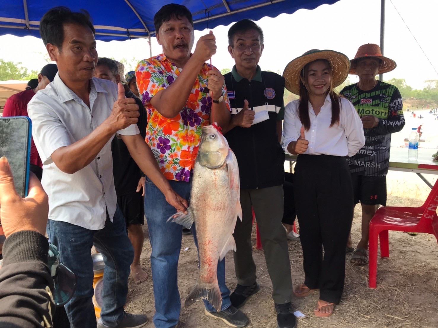 นายไกสฤษดิ์ พูนพาณิชย์ ประมงจังหวัดอุบลราชธานี พร้อมด้วย นายธงชัย  ชาตำแย ประมงอำเภอม่วงสามสิบ และเจ้าหน้าที่กลุ่มบริหารจัดการด้านการประมง สำนักงานประมงจังหวัดอุบลราชธานี ร่วมกับนายอนุสรณ์  แซ่ต่าง นักวิชาการประมง ศูนย์วิจัยและพัฒนาการเพาะเลี้ยงสัตว์น้ำจืดอำนาจเจริญ  และคณะกรรมการแหล่งน้ำหนองพายใหญ่