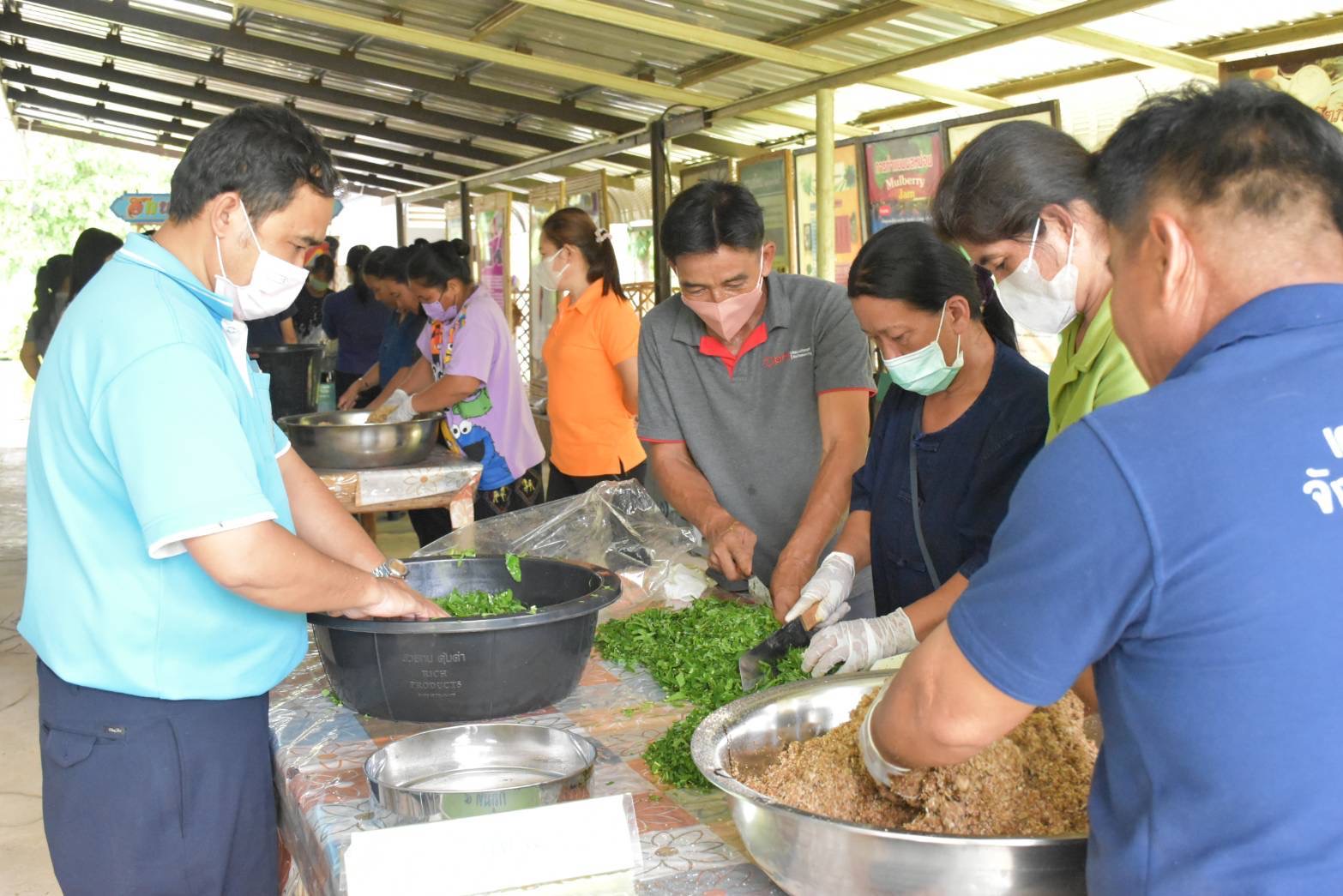 ประมงอุบล นำเกษตรกรเข้ารับการฝึกอบรมเชิงปฏิบัติการ การถ่ายทอดเทคโนโลยีและนวัตกรรมด้านหม่อนไหม (การแปรรูปใบหม่อนสำหรับเป็นอาหารปลา)
