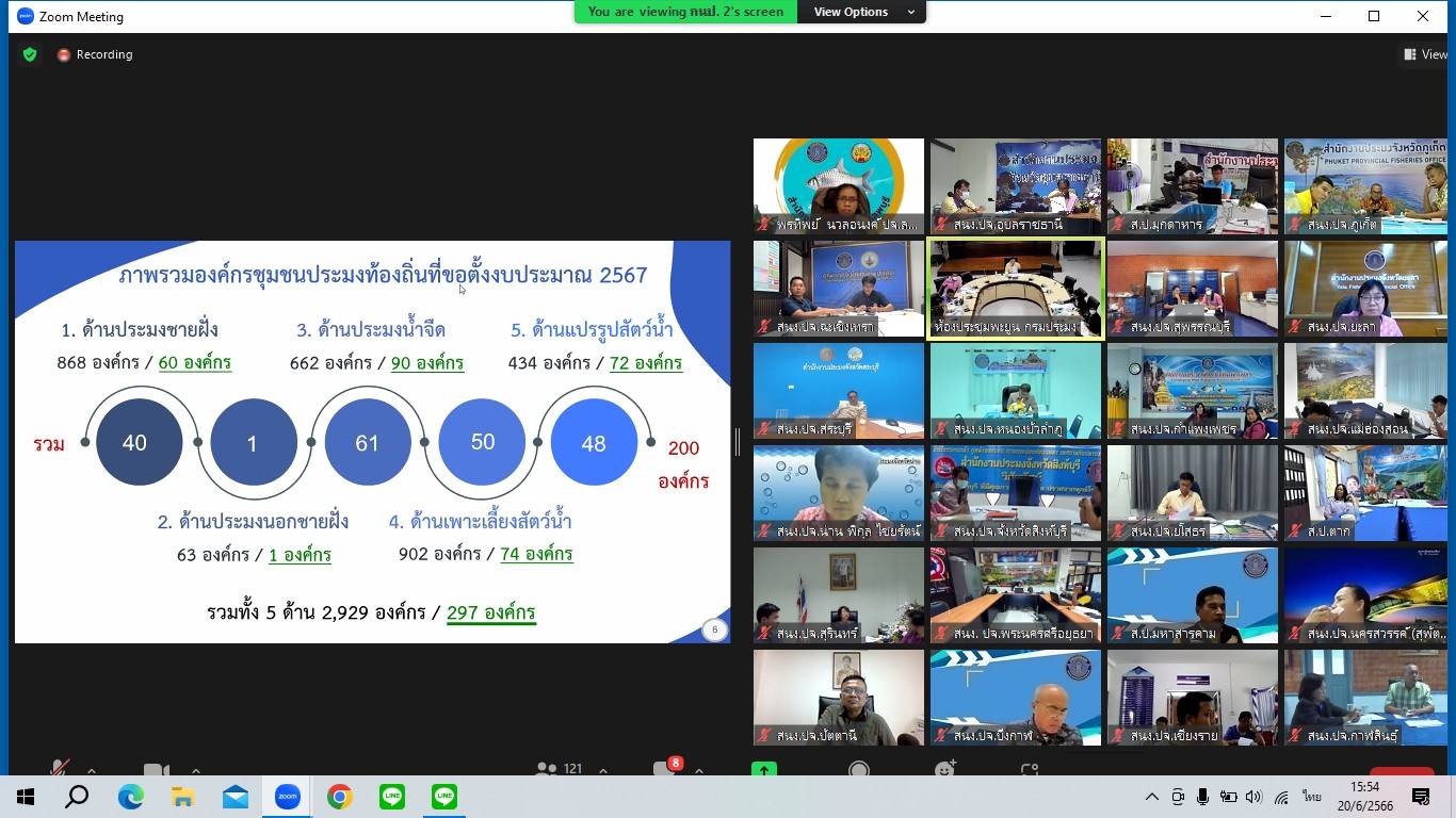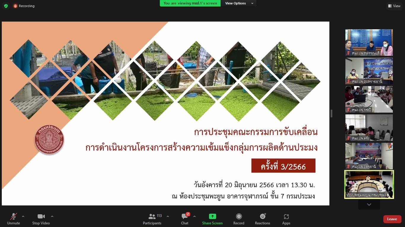 ณ ห้องประชุมสำนักงานประมงจังหวัดอุบลราชธานี ผ่านโปรแกรม Zoom Meeting โดยมีนายถาวร ทันใจ รองอธิบดีกรมประมง เป็นประธาน