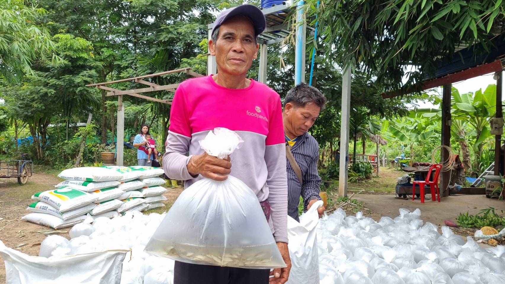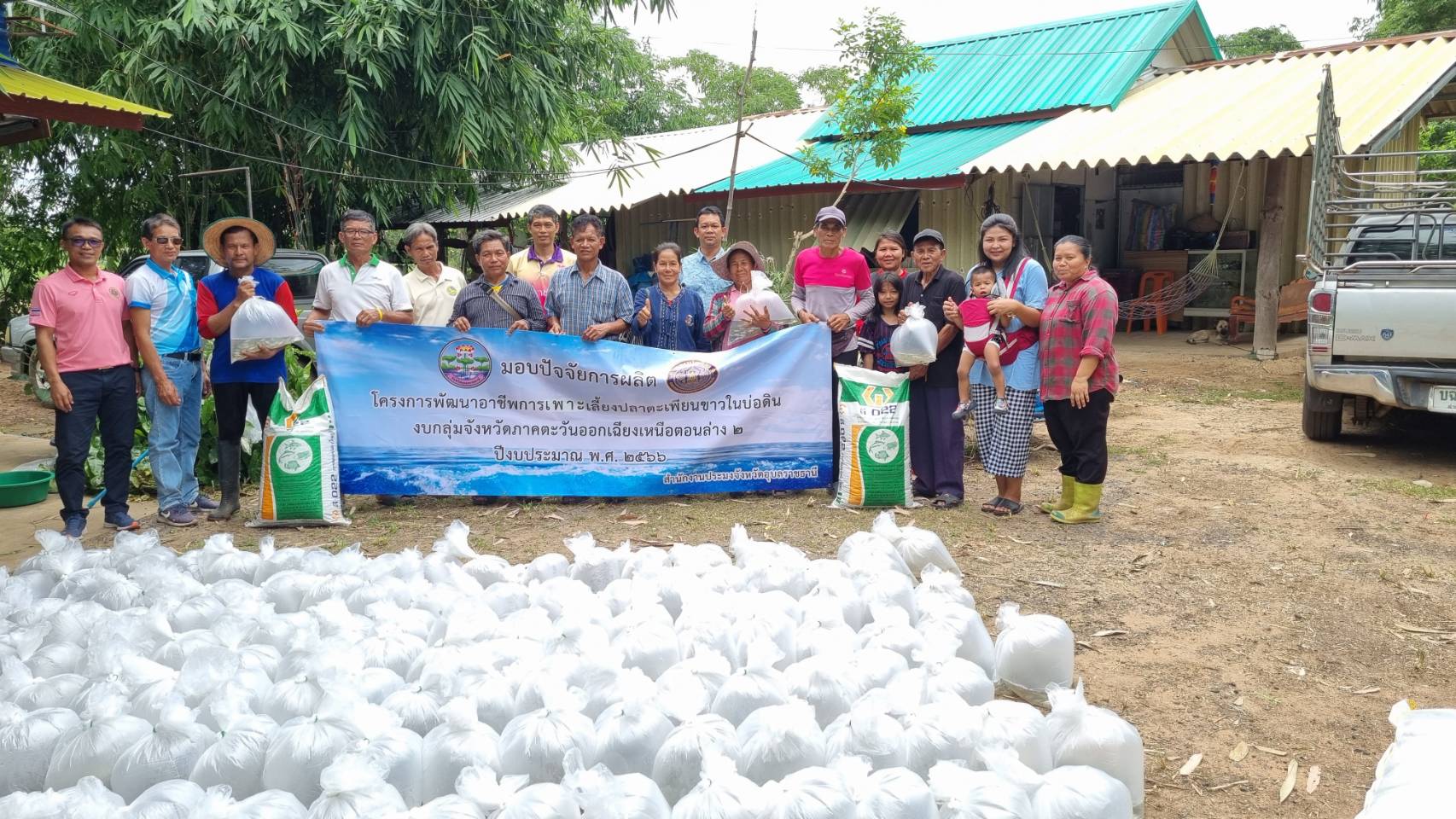 ประมงอุบลฯ มอบปัจจัยการผลิตโครงการพัฒนาอาชีพการเพาะเลี้ยงปลาตะเพียนขาวในบ่อดิน