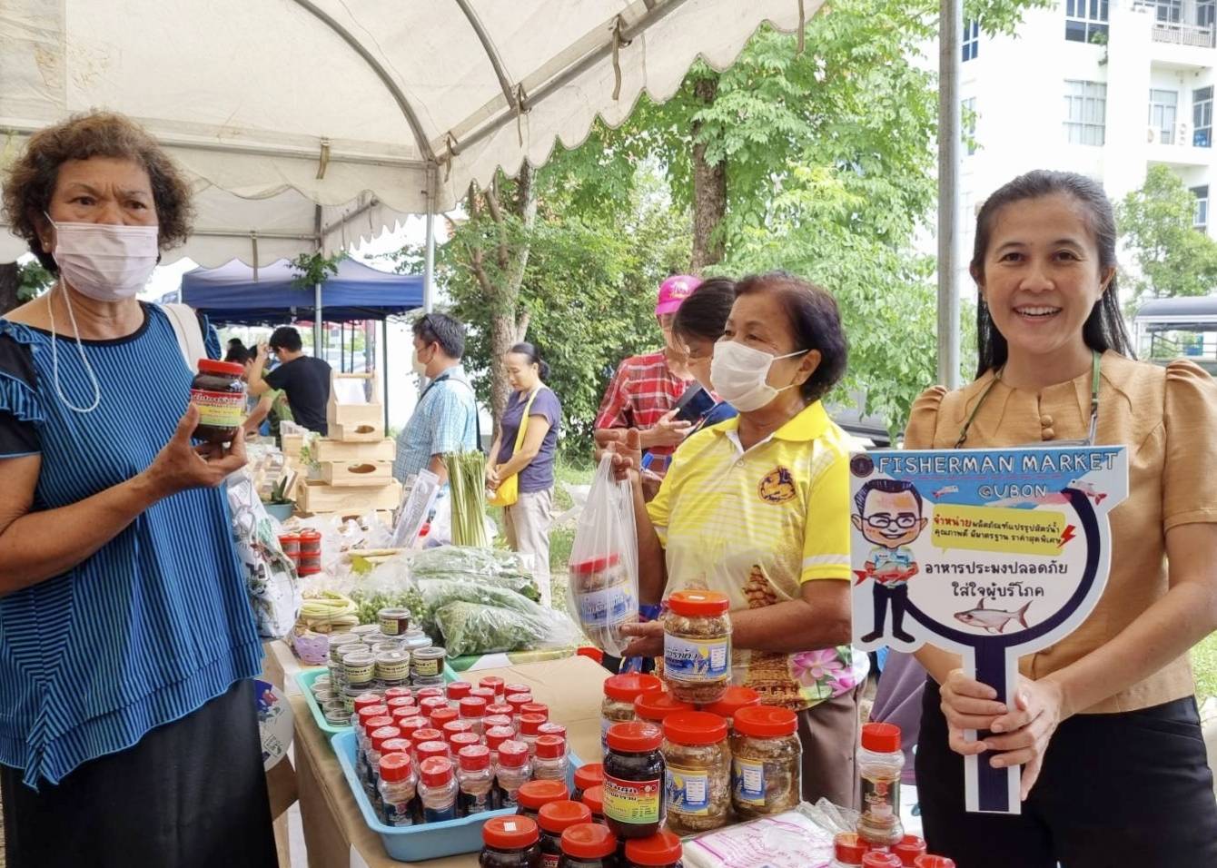 พร้อมนี้ สำนักงานประมงจังหวัดอุบลราชธานี ดำเนินการขับเคลื่อนโครงการการกระจายสินค้าภายใต้ธีม Fisherman Market ด้วยการนำกลุ่มวิสาหกิจชุมชน อาทิเช่น กลุ่มวิสาหกิจชุมชนกลุ่มปลาส้มบ้านคำกลาง อำเภอสิริธร กลุ่มวิสาหกิจชุมชนกลุ่มแปรรูปปลารัญจวน อำเภอเมืองอุบลราชธานี กลุ่มแม่บ้านเกษตรกรแปรรูปผลผลิตทางการเกษตรสว่างวีระวงศ์ อำเภอสว่างวีระวงศ์ กลุ่มวิสาหกิจชุมชนกลุ่มสตรีปลาร้าปลารวย และกลุ่มวิสาหกิจชุชนแปรรูปจากปลาบ้านด่านใหม่ อำเภอโขงเจียม รวม 5 กลุ่ม นำผลิตภัณฑ์แปรรูปจากปลามาจำหน่าย ได้แก่ ปลาส้มปลาอีตู๋ (ปลากาดำ) ปลาส้มปลาตะเพียนขาว ส้มไข่ปลาอีตู๋ อั๋วกบ ไส้กรอกไข่ปลา ข้าวเกรียบปลาส้ม ปลาร้าผง ผลาร้าปลานิล ปลานิลแดดเดียวแบบสุก เขียดแห้ง ปลาแห้ง และขนมข้าวเกรียบปลานิล เป็นต้น มาจำหน่ายในงาน