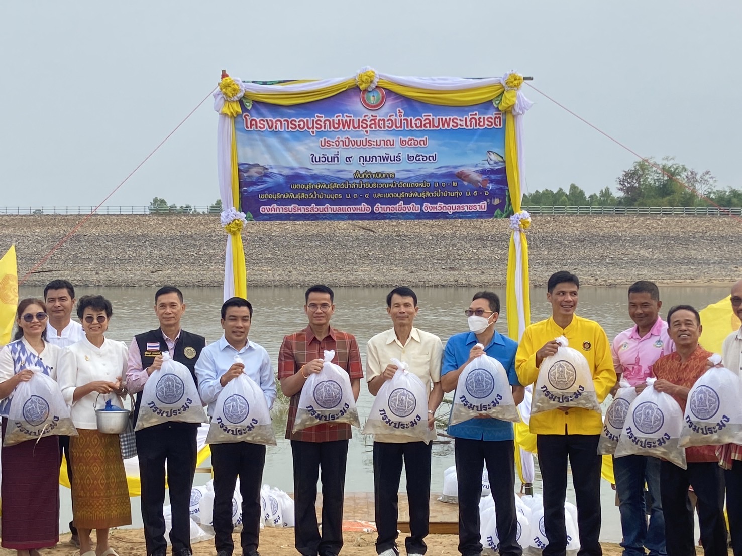 นายสุริยันต์  วรรณวงษ์ ประมงจังหวัดอุบลราชธานี และคณะ ร่วมงานวันอนุรักษ์พันธุ์สัตว์น้ำ ประจำปี 2567 โดยมีกิจกรรมทำบุญตักบาตร บวชปลาสืบชะตาสัตว์น้ำ ปล่อยพันธุ์สัตว์น้ำ จำนวน 50,000 ตัว ซึ่งจัดโดยองค์การบริหารส่วนตำบลแดงหม้อ อำเภอเขื่องใน จังหวัดอุบลราชธานี เพื่อส่งเสริมและปลูกฝังให้ชุมชนเห็นความสำคัญและมีส่วนร่วมในการอนุรักษ์ทรัพยากรสัตว์น้ำอย่างยั่งยืน ต่อไป โดยได้รับเกียรติจากนายภัทรพล สารการ นายอำเภอเขื่องใน เป็นประธานในงาน สำหรับพันธุ์สัตว์น้ำที่นำมาปล่อยได้รับการสนับสนุนจากศูนย์วิจัยและพัฒนาประมงน้ำจืดอุบลราชธานี