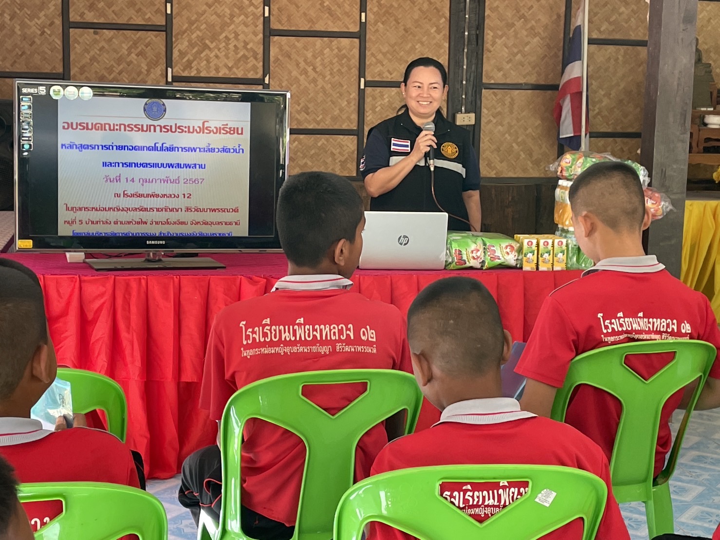 อำเภอโขงเจียม จังหวัดอุบลราชธานี????นางสาวศศิวภรณ์  ถวิลการ เจ้าพนักงานประมงปฏิบัติงาน พร้อมด้วยนายสุวิทย์  พัชนี นักวิชาการประมง กลุ่มบริหารจัดการด้านการประมง อบรมหลักสูตรการถ่ายทอดเทคโนโลยีการเพาะเลี้ยงสัตว์น้ำ และการเกษตรแบบผสมผสาน ให้กับคณะกรรมการประมงโรงเรียน โรงเรียนเพียงหลวง 12 ในทูลกระหม่อมหญิงอุบลรัตนราชกัญญา สิริวัฒนาพรรณวดี  บ้านท่าล้ง หมู่ที่ 5 ตำบลห้วยไผ่ อำเภอโขงเจียม จังหวัดอุบลราชธานี เพื่อเป็นการเพิ่มทักษะ ให้มีความรู้ด้านการเพาะเลี้ยงสัตว์น้ำ การบริหารจัดการแหล่งน้ำอย่างเหมาะสมกับพื้นที่ การอนุรักษ์ทรัพยากรสัตว์น้ำ และการเกษตรแบบผสมผสาน ตลอดจนสามารถนำความรู้ที่ได้จากการฝึกอบรมไปถ่ายทอดให้คนในชุมชนขยายผลสู่การประกอบอาชีพด้านการเพาะเลี้ยงสัตว์น้ำ ต่อไป ทั้งนี้ ได้มอบพันธุ์ปลาดุก จำนวน 200 ตัว ให้กับทางโรงเรียน เพื่อเลี้ยงไว้ประกอบเป็นอาหารกลางวันให้กับเด็กนักเรียนได้รับประทาน ต่อไป