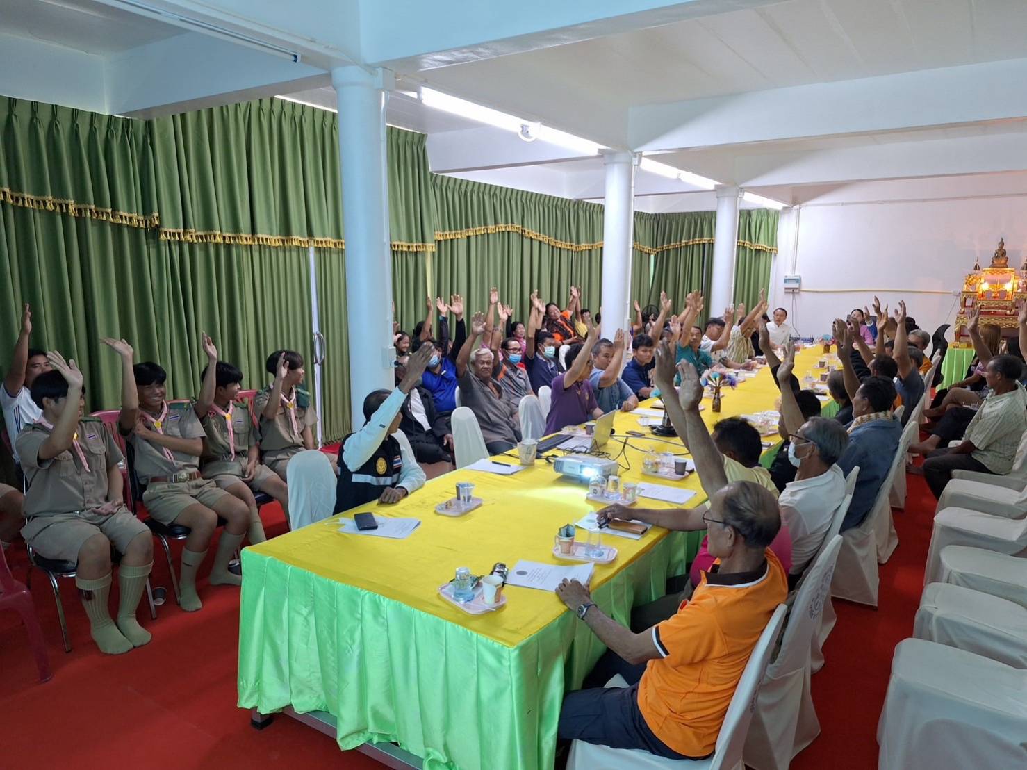 โดยมีนางสาวอัจฉรา สกุลศักดิ์ ถาวร นายอำเภอนาเยีย เป็นประธานในการประชุม
