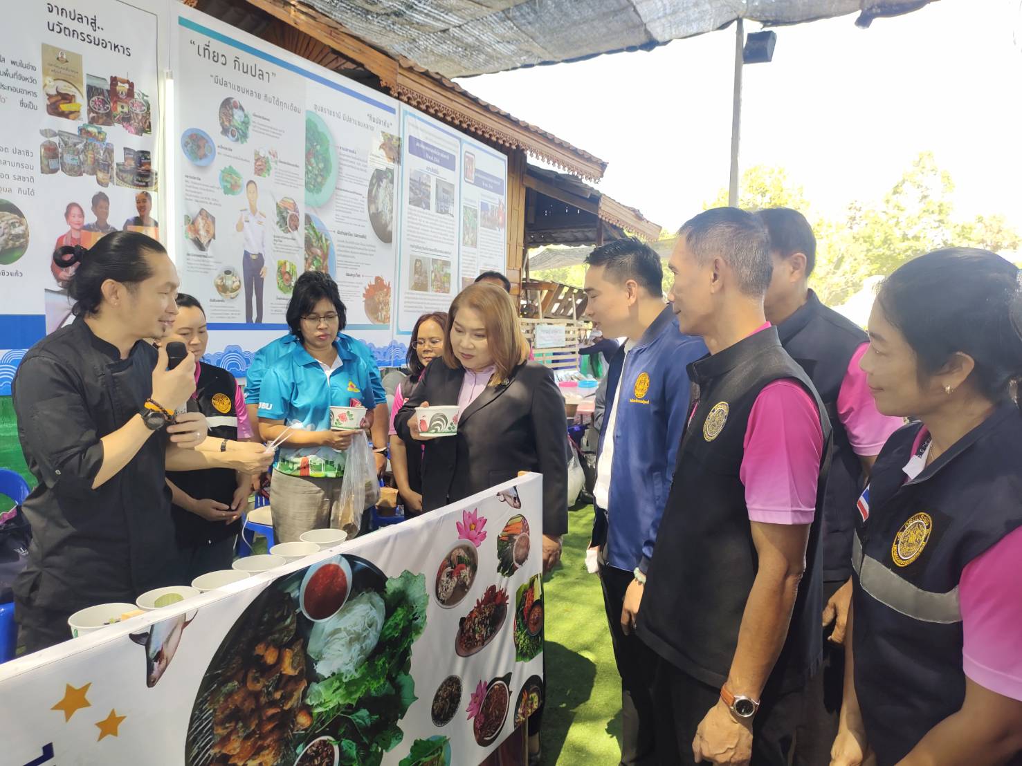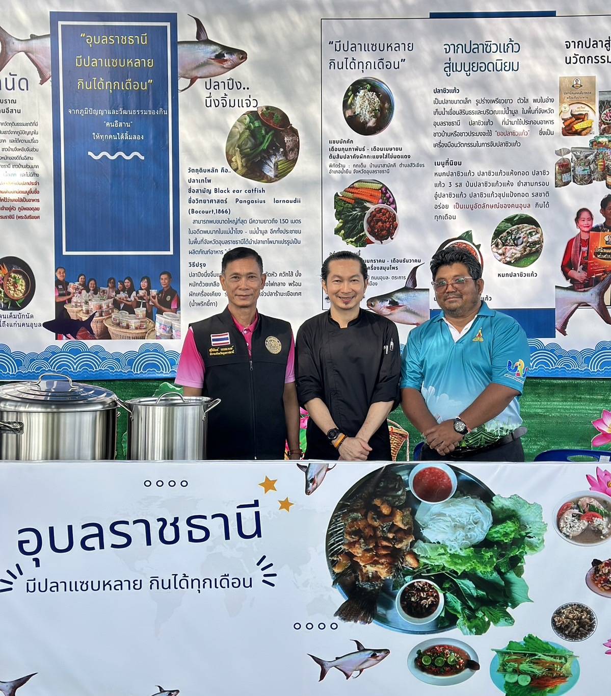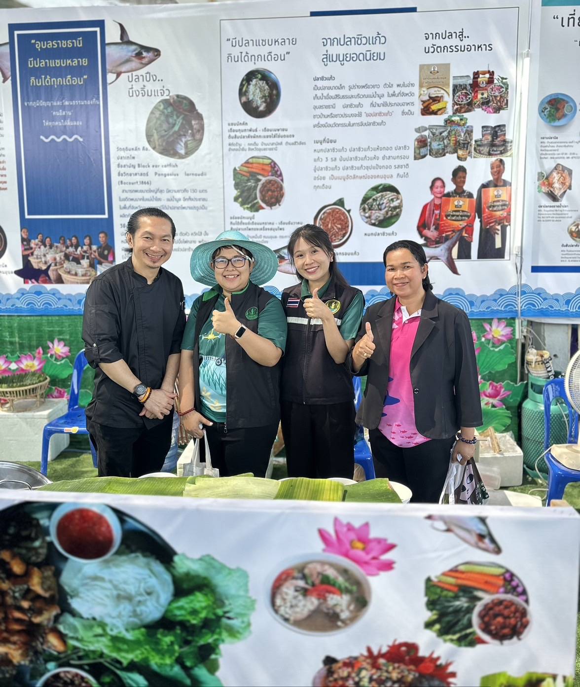 นายสุริยันต์ วรรณวงษ์ ประมงจังหวัดอุบลราชธานี กล่าวว่า สำหรับการจัดงานเกษตรอีสานใต้ ประจำปี 2567 ภายใต้แนวคิด “เทคโนโลยีและนวัตกรรมเกษตรแม่นยำสู่เกษตรไทยมูลค่าสูง” สำนักงานประมงจังหวัดอุบลราชธานี ในฐานะหน่วยงานสังกัดกรมประมงในพื้นที่ จัดแสดงนิทรรศการในรูปแบบ นิทรรศการมีชีวิต ได้แก่ จัดแสดงสัตว์น้ำจืดเศรษฐกิจ ปลาบึก ปลากดคัง ปลาสวาย ปลาสวยงามเศรฐกิจ การเลี้ยงปลาดุกด้วยระบบ Biofloc และบอร์ดนิทรรศการแสดงข้อมูลทางวิชาการการเพาะเลี้ยงสัตว์น้ำเชิงพาณิชย์ โดยใช้เทคโนโลยีและนวัตกรรม (การเลี้ยงปลาทับทิม ปลานิลในบ่อผ้าใบ (PE) ตลอดจนการสาธิตการทำและชิมอาหารโดยที่มีชื่อเสียง “เชฟเปี๊ยก สง่า จันทร์จวง” ที่มารังสรรค์เมนูจากภูมิปัญญาท้องถิ่น โดยใช้วัตถุดิบจากปลาเทโพ (ปลาปึ่ง ปลาประจำจังหวัดอุบลราชธานี) ในชื่อเมนู ผ้าขาวม้าห่มมัจฉา เกี๊ยวแป้ง 2 สี ห่อใส้ลาบปลาดุกย่าง ผสมปลารมควัน ท็อปด้วยไข่ปลาแซลมอน ราดด้วยซอสหลนเค็มบักนัด “วัตถุดิบหลัก”ปลาดุก ใช้ทำลาบ ห่อเกี๊ยวเป็นลาวิโอลี่แบบอิตาเลี่ยน โดยจะมีส่วนผสมของแป้งข้าวเหนียวซึ่งในพื้นที่จะมีการเพาะปลูกข้าวเหนียวอยู่แล้ว  และปลาดุกภายใต้แนวความคิด “อุบลราชธานี มีปลาแซบหลาย กินได้ทุกเดือน” รวมทั้งการนำสถาบันเกษตรกรดีเด่นแห่งชาติ
