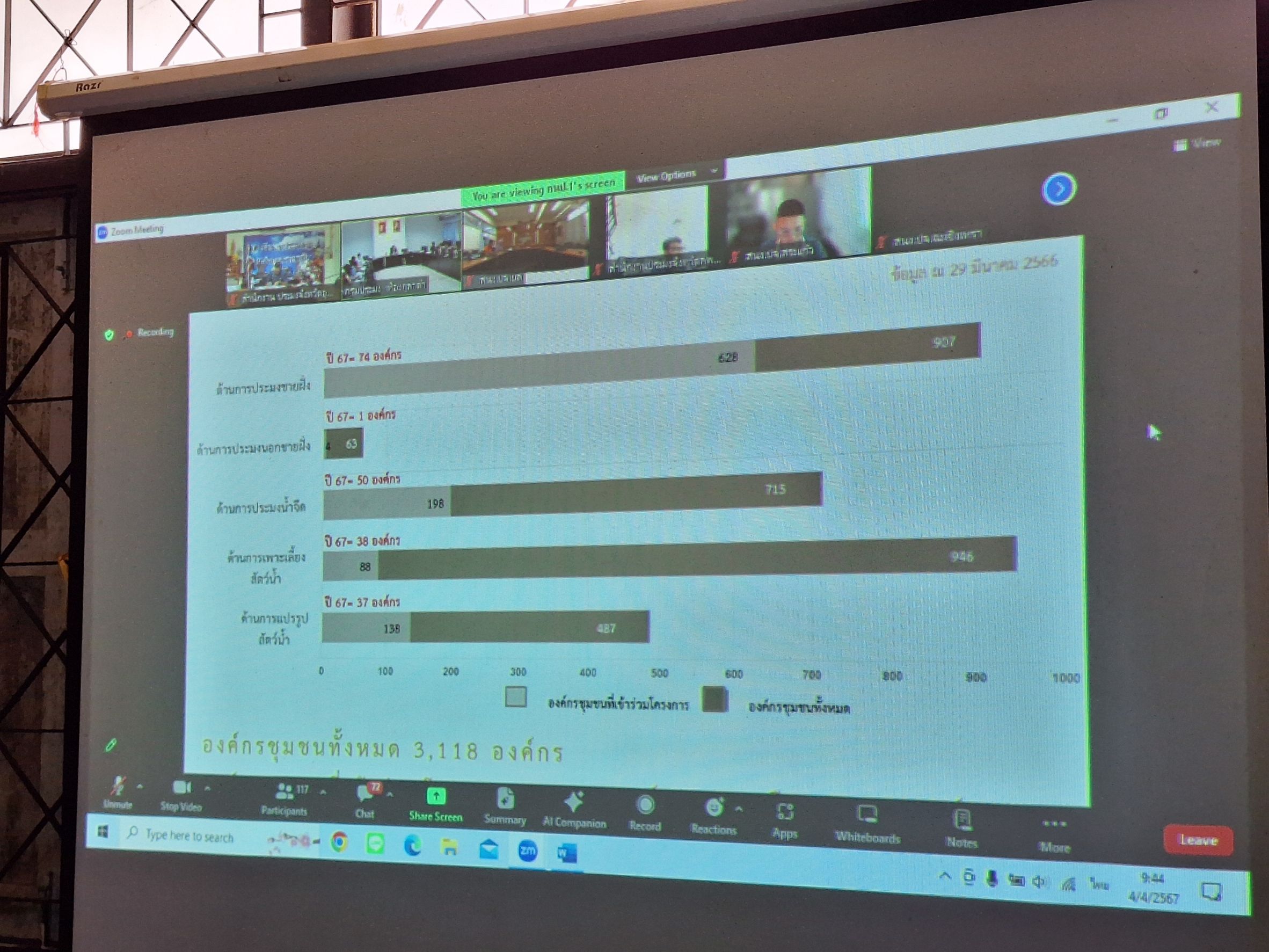 นายสุนทร รุ่งเรือง หัวหน้ากลุ่มบริหารจัดการด้านการประมง นายเอกชัย ปัญญาแก้ว เจ้าพนักงานประมงปฏิบัติงาน นายสุวิทย์ พัชนี นักวิชาการประมง และนางสาวลลิตา อมรสิน เจ้าพนักงานประมง เข้าร่วมการประชุมคณะกรรมการขับเคลื่อนการดำเนินงานโครงการสร้างความเข้มแข็งกลุ่มการผลิตด้านประมง ครั้งที่ 1/2567 เพื่อติดตามความก้าวหน้าการดำเนินโครงการฯ ซึ่งมีประเด็นเกี่ยวข้องกับสำนักงานประมงจังหวัด ผ่านระบบประชุมทางไกล Zoom Meeting ห้องประชุมกุลาดำ ชั้น 7 โดยมีนายสุชาติ แสงจันทร์ ผู้ตรวจราชการกรมประมง เป็นประธาน