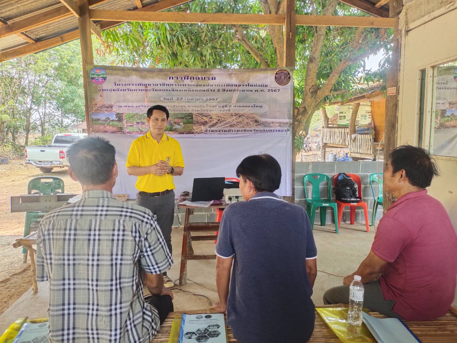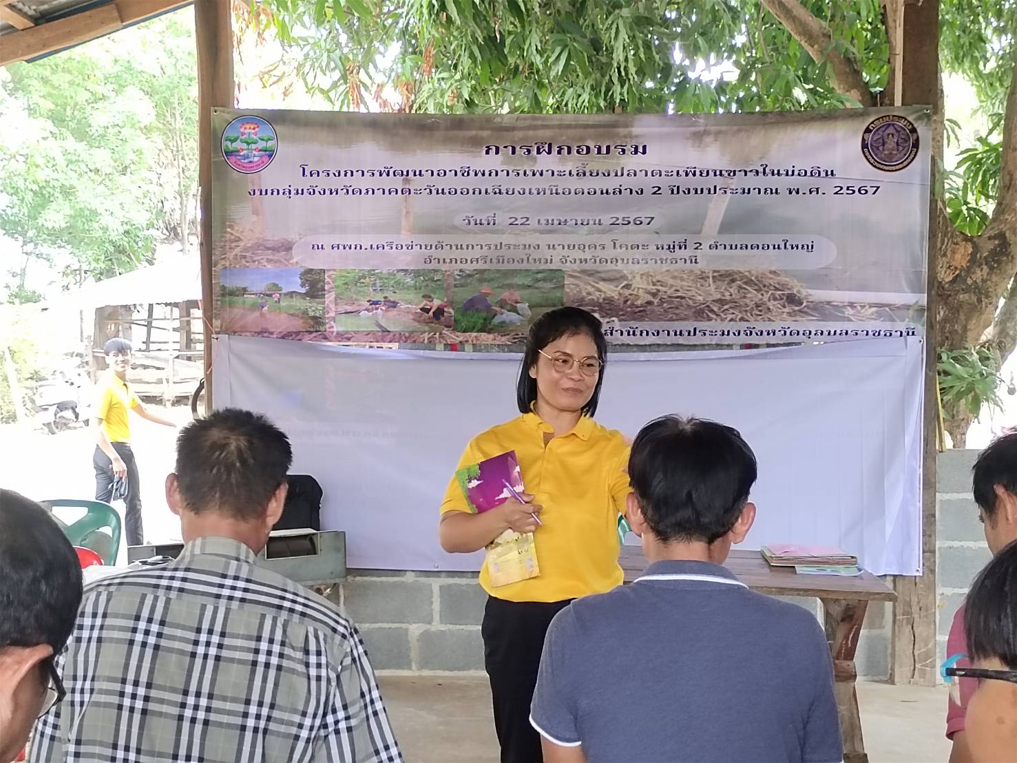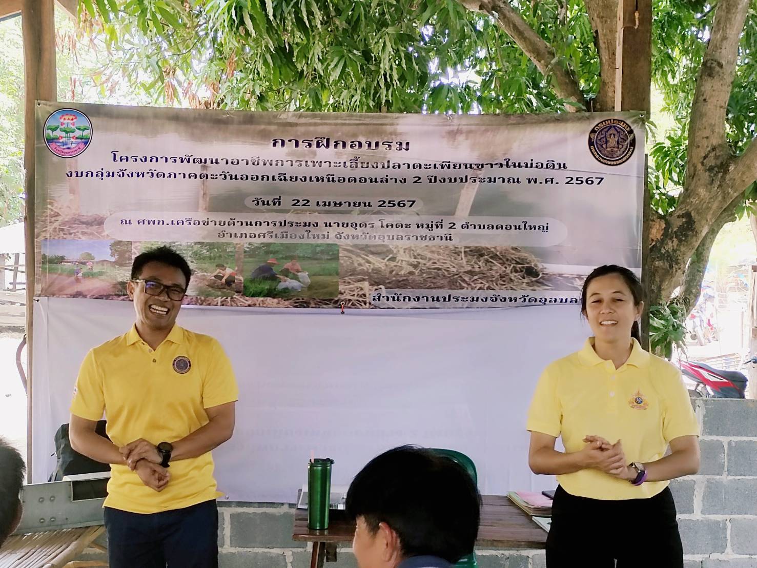 ประมงอุบลฯ บูรณางานจัดกิจกรรมอบรมเกษตรกรที่เข้าร่วมโครงการพัฒนาอาชีพการเพาะเลี้ยงปลาตะเพียนขาวในบ่อดิน (งบกลุ่มจังหวัดภาคตะวันออกเฉียงเหนือตอนล่าง 2 ปีงบประมาณ 2567) อ.ศรีเมืองใหม่