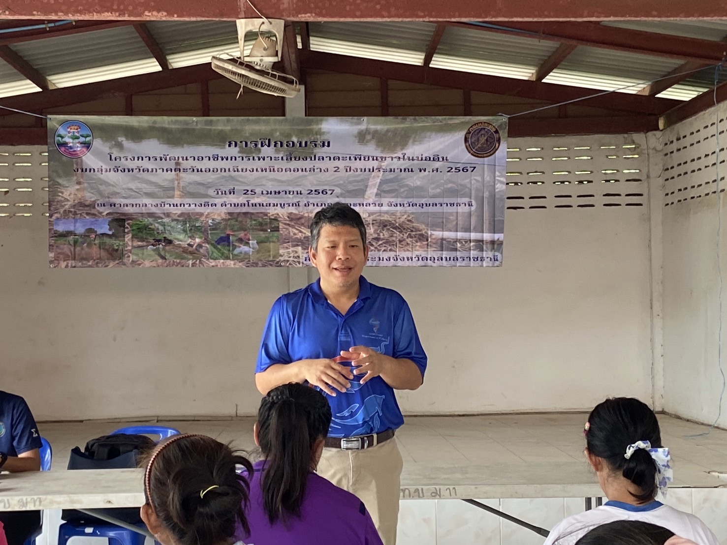 ประมงอุบลฯ บูรณางานจัดกิจกรรมอบรมโครงการพัฒนาอาชีพการเพาะเลี้ยงปลาตะเพียนขาวในบ่อดิน (งบกลุ่มจังหวัดภาคตะวันออกเฉียงเหนือตอนล่าง 2 ปีงบประมาณ 2567) อ.นาจะหลวย