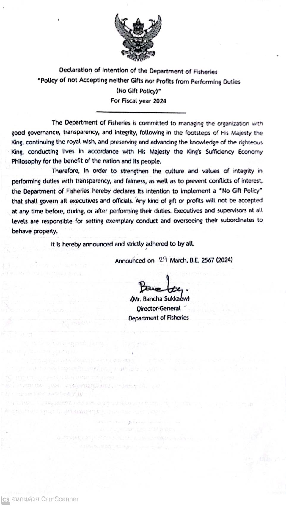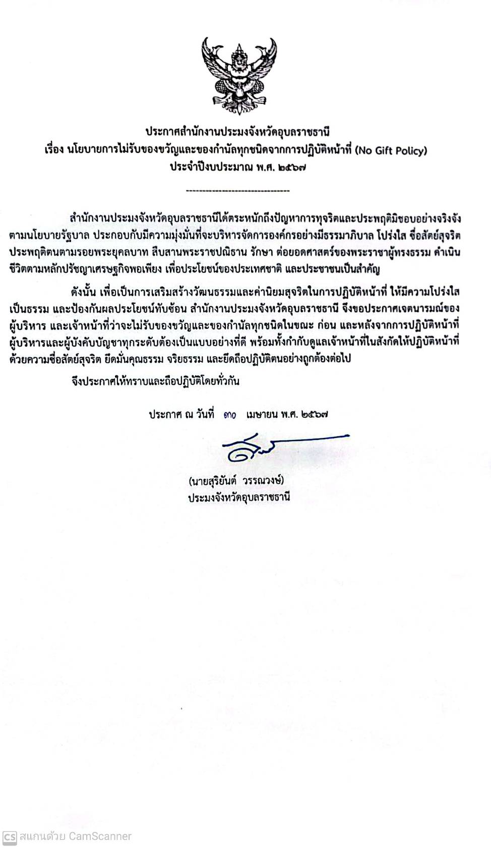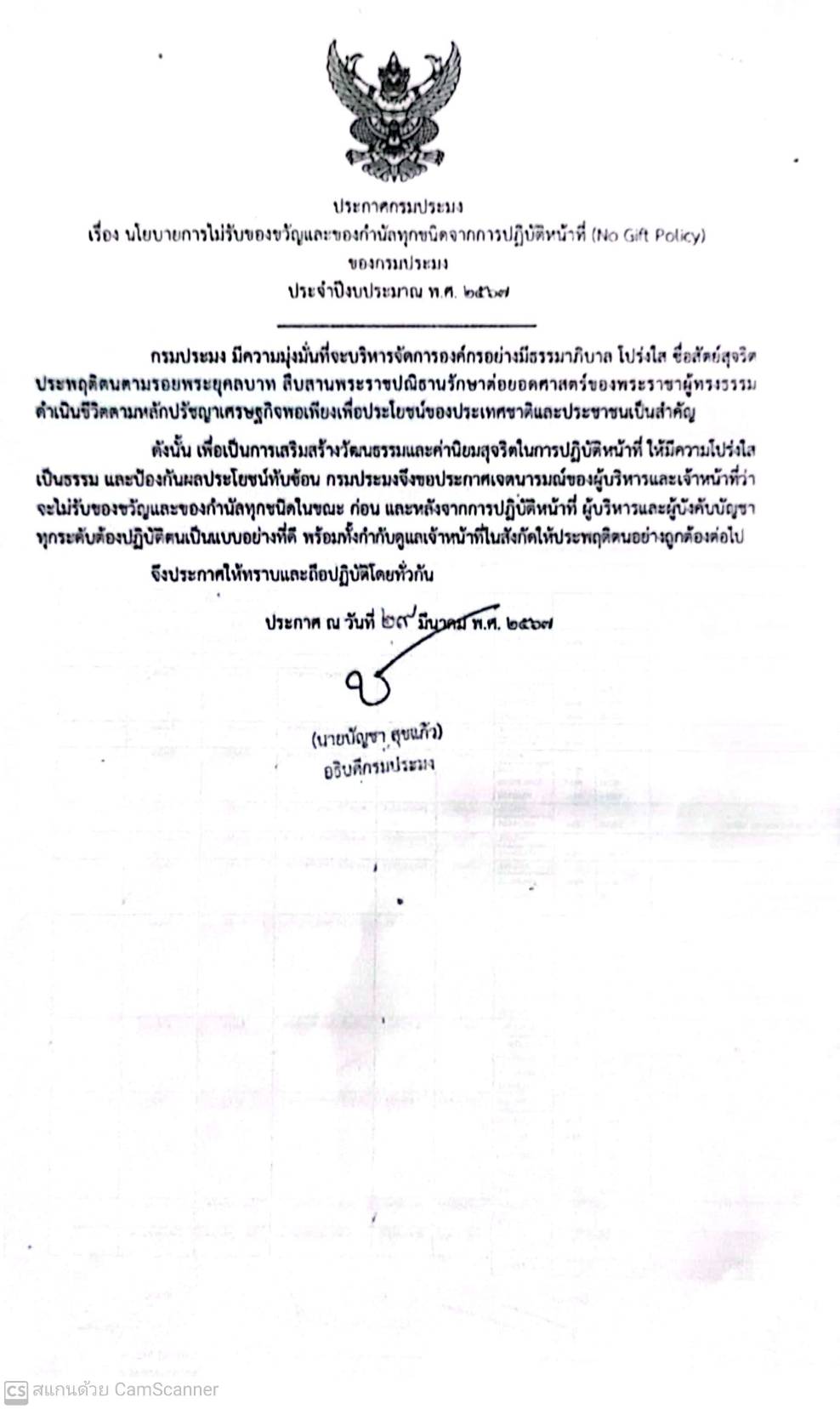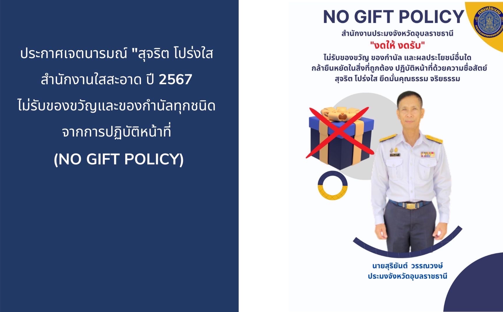 เรื่อง นโยบายไม่รับของขวัญและของกำนัลจากการปฏิบัติหน้าที่ (No Gift Policy) ประจำปีงบประมาณ พ.ศ.2567เรื่อง นโยบายไม่รับของขวัญและของกำนัลจากการปฏิบัติหน้าที่ (No Gift Policy) ประจำปีงบประมาณ พ.ศ.2567