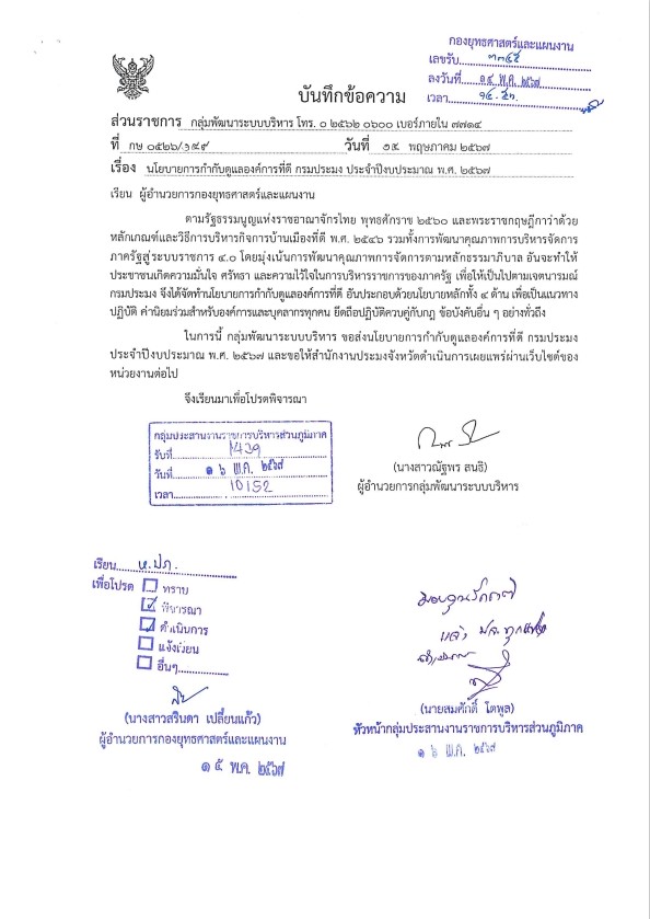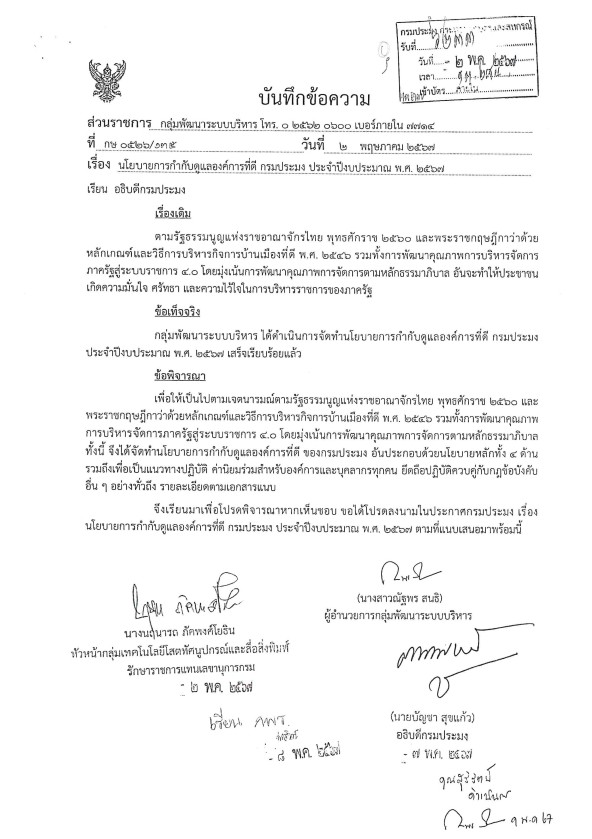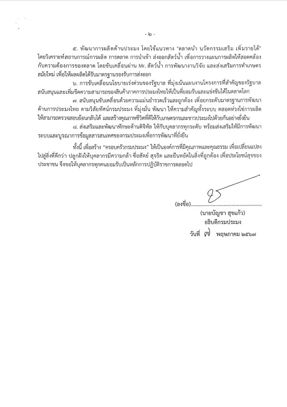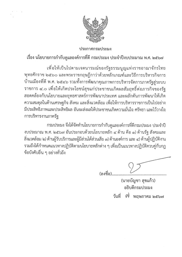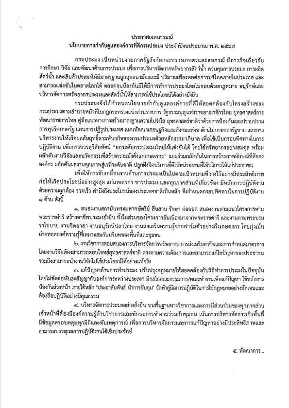 ประกาศกรมประมง เรื่อง นโยบายการกำกับดูแลองค์การที่ดี กรมประมง ประจำปีงบประมาณ พ.ศ. 2567