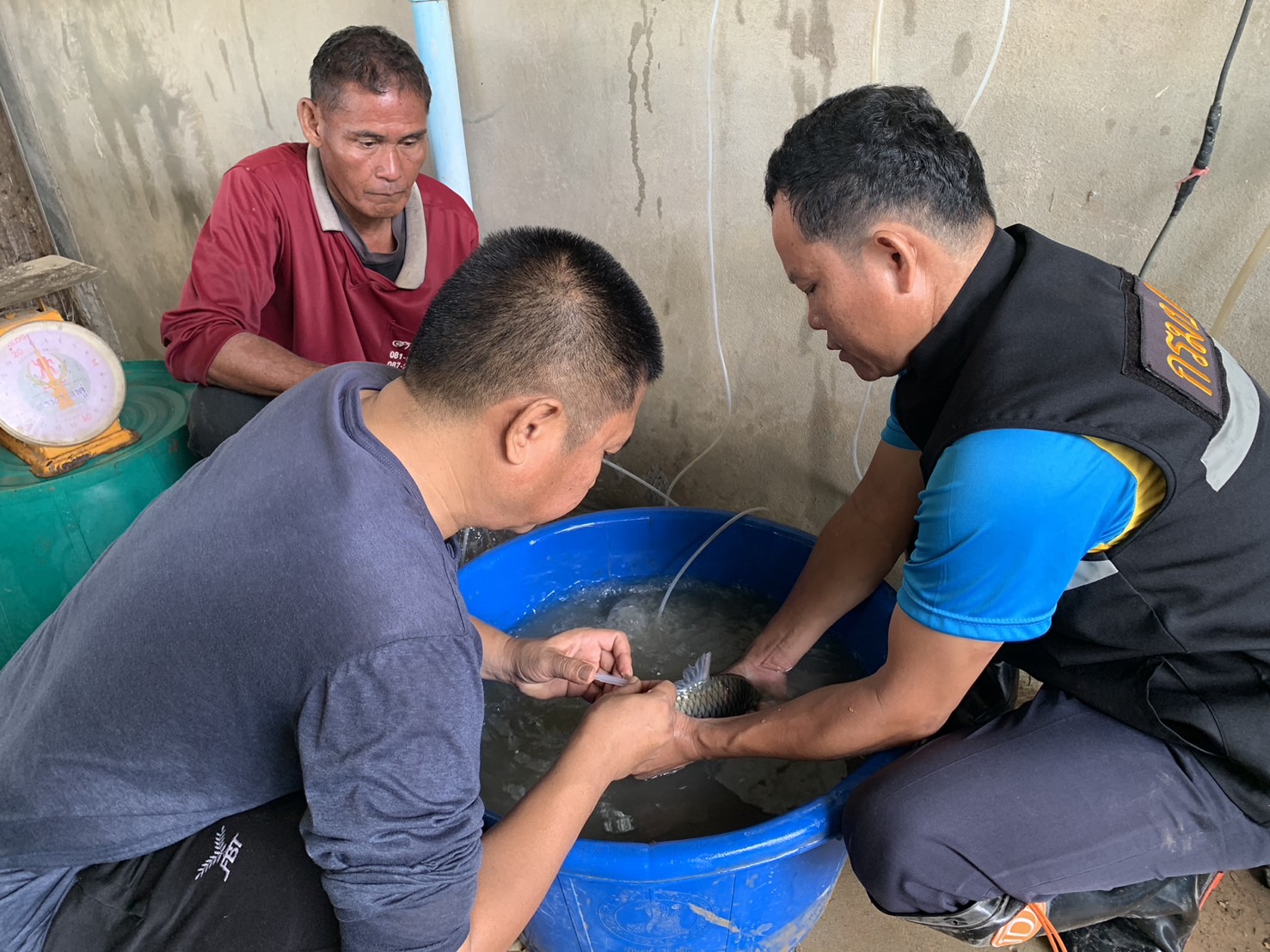 ทีมประมงอุบลราชธานี ติดตามการดำเนินงานและเพาะพันธุ์ปลา ณ ฟาร์มตัวอย่างฯบ้านยางน้อย