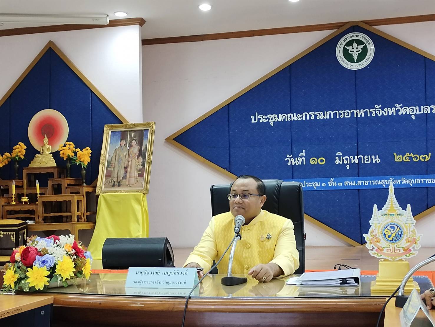 วันที่ 10 มิถุนายน 2567 เวลา 09.00 น. นายสุริยันต์ วรรณวงษ์ ประมงจังหวัดอุบลราชธานี มอบหมายให้นางสาวศิริรัตน์ อุทัยวัฒน์ ตำแหน่งเจ้าพนักงานประมงชำนาญงาน พร้อมด้วย นางสาวบรรจง สิมสา ตำแหน่งเจ้าพนักงานประมงปฏิบัติงาน เข้าร่วมประชุมคณะกรรมการอาหารจังหวัดอุบลราชธานี ครั้งที่1/2567 ณ ห้องประชุม1 อาคาร1 สำนักงานสาธารณสุขจังหวัดอุบลราชธานี โดยมีนายชัชวาลย์ เบญจสิริวงศ์ รองผู้ว่าราชการจังหวัดอุบลราชธานี เป็นประธานการประชุมคณะทำงานกรรมการอาหารจังหวัดอุบลราชธานี ครั้งที่1/2567 โดยสืบเนื่องจากการประการประชุมที่ผ่านมา ได้มีการดำเนินงานตามแผนบูรณาการอาหารปลอดภัยจังหวัดอุบลราชธานี ปีงบประมาณประมาณ 2567 ได้แก่ การศึกษาวิจัยการทำก๋วยจั๊บสูตรลดโซเดียม การแก้ไขปัญหาสารตกค้างในเนื้อสัตว์(สารเร่งเนื้อแดง) การแก้ไขปัญหาสารปนเปื้อนในสินค้าเกษตร การสร้างการรับรู้ด้านอาหารปลอดภัย และการแก้ไขปัญหาสารปนเปื้อนฟอร์มาลินในอาหารภายใต้คณะกรรมการอาหารระดับอำเภอ