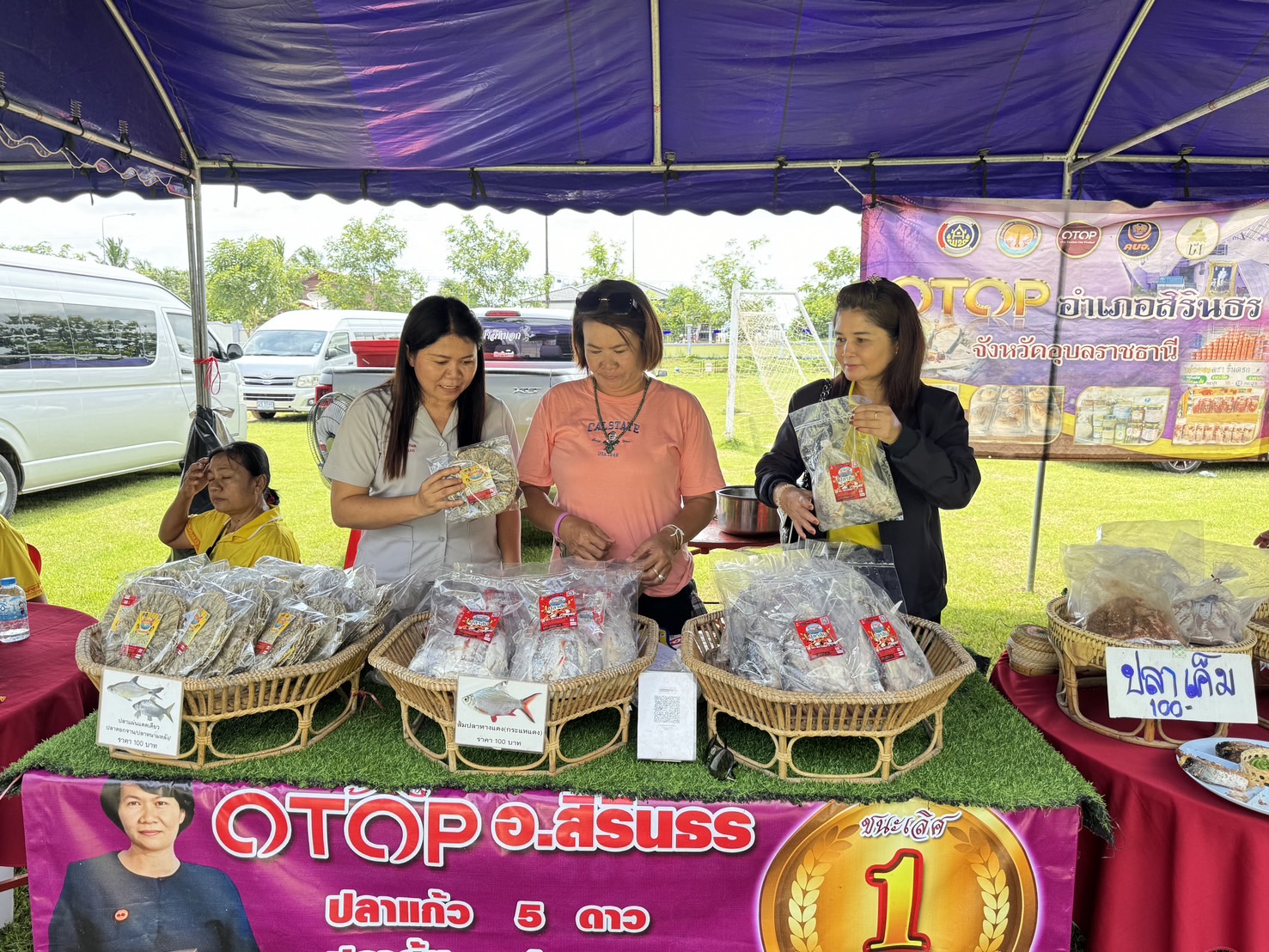 ประมงอำเภอสิรินธร เยี่ยมเยียนให้กำลังใจองค์กรชุมชนประมงท้องถิ่นวิสาหกิจชุมชนกลุ่มปลาส้มบ้านคำกลาง ร่วมออกร้านจำหน่ายสินค้าโอท็อป อำเภอสิรินธร หน่วยบริการจังหวัดเคลื่อนที่ และหน่วยแพทย์ พอ.สว.อำเภอสิรินธร