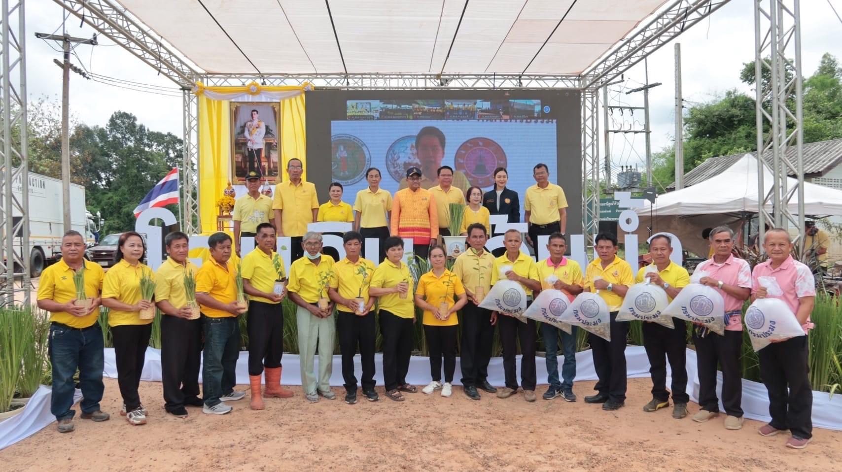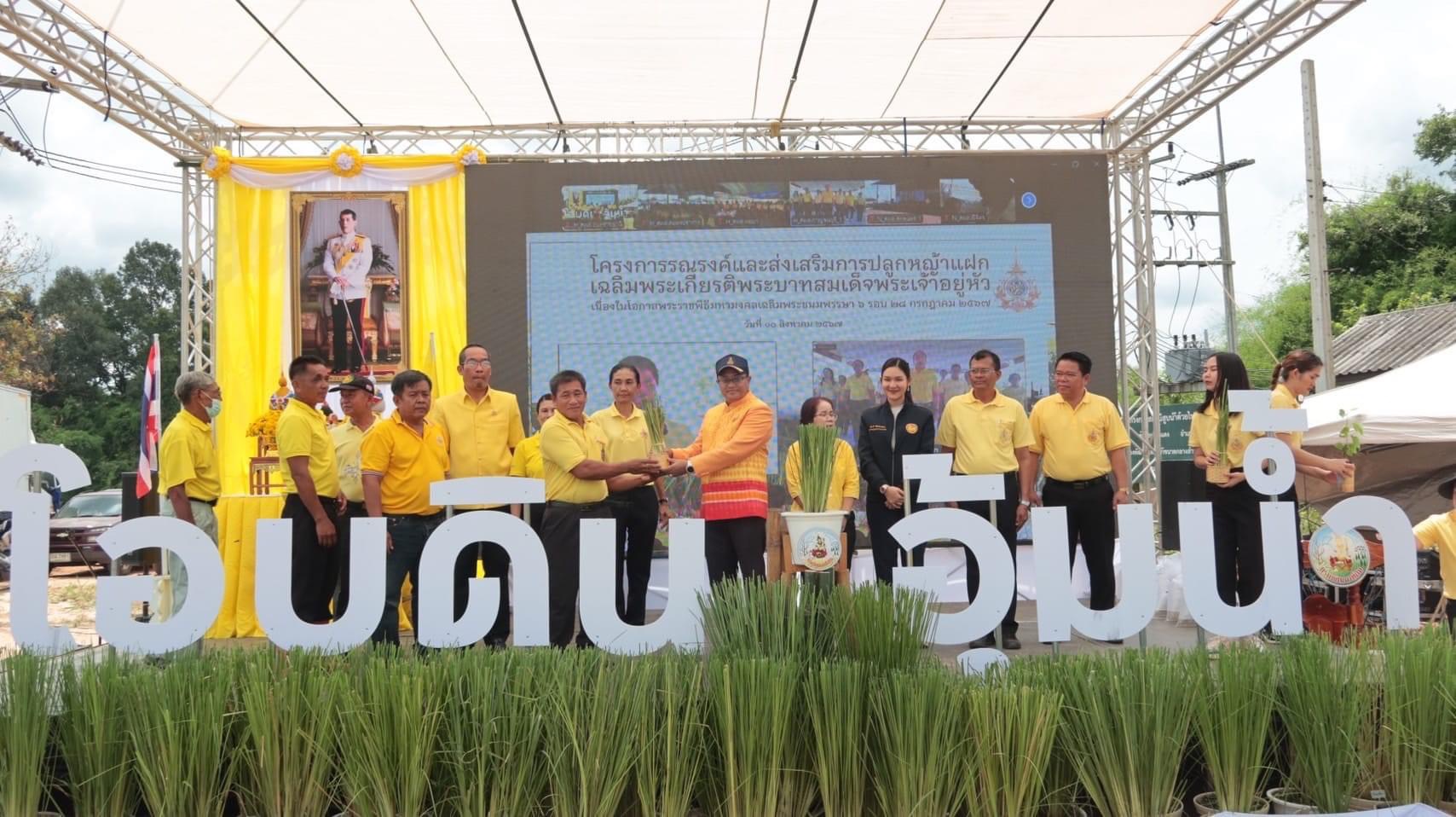 ในการนี้ประธานในพิธีฯ ได้นำหัวหน้าส่วนราชการ แขกผู้มีเกียรติ และเกษตรกรปลูกหญ้าแฝกบริเวณรอบสระน้ำ  พร้อมมอบปัจจัยการผลิตด้านการเกษตร ประกอบด้วย หญ้าหญ้าแฝก พันธุ์ปลาน้ำจืด พันธุ์หม่อน และกล้ายางนา ให้แก่เกษตรกรฯ เพื่อนำไปปลูก และเลี้ยงอีกด้วย