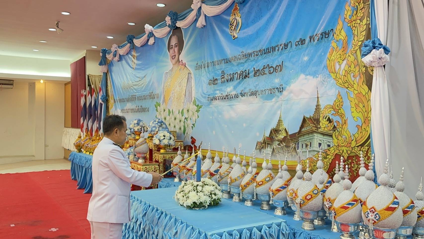 วันจันทร์ที่ 12 สิงหาคม 2567 เวลา 18.00 น.  (ภาคค่ำ) นางสุภาพร  วัฒนสิทธิ์  ประมงอำเภอวารินชำราบ ร่วมกิจกรรมเฉลิมพระเกียรติเนื่องในโอกาส วันเฉลิมพระชนมพรรษาสมเด็จพระนางเจ้าสิริกิติ์ พระบรมราชินีนาถ พระบรมราชชนนีพันปีหลวง 12 สิงหาคม 2567 (วันแม่แห่งชาติ) โดยร่วมพิธี ดังนี้