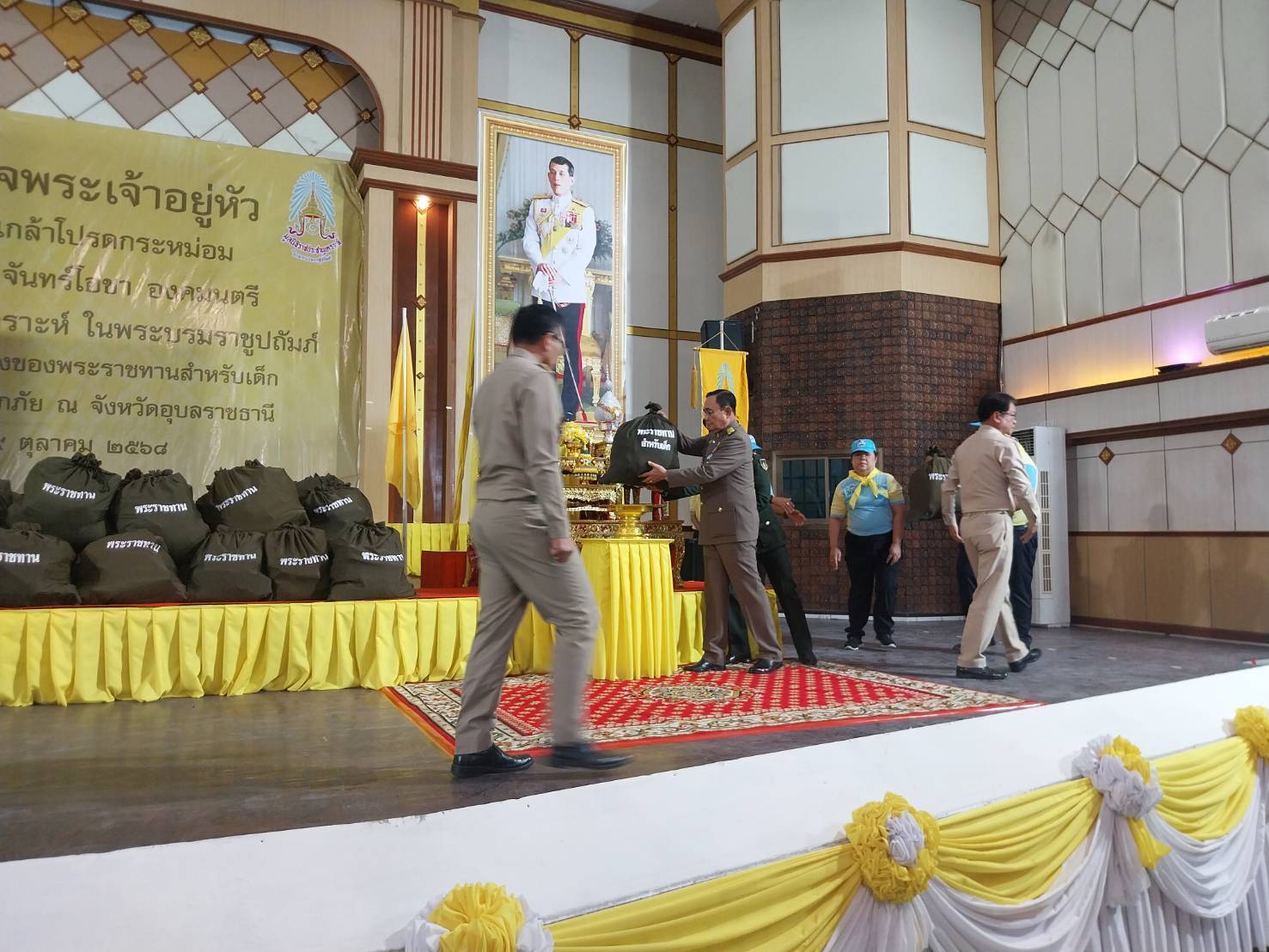 ตามที่ พระบาทสมเด็จพระเจ้าอยู่หัว ทรงพระกรุณาโปรดเกล้าโปรดกระหม่อมให้พลเอก ประยุทธ์ จันทร์โอชา องคมนตรี ร่วมกับมูลนิธิราชประชานุเคราะห์ ในพระบรมราชูปถัมภ์ เชิญสิ่งของพระราชทานและสิ่งของพระราชทานสำหรับเด็ก มอบแก่ประชาชนผู้ประสบภัย ณ จังหวัดอุบลราชธานี ในวันที่ 9  ตุลาคม 2568 ณ หอประชุมศาลาประชาวาริน เทศบาลเมืองวารินชำราบ อำเภอวารินชำราบ จังหวัดอุบลราชธานี โดยมีนายชำนาญ ชื่นตา ผู้ว่าราชการจังหวัดอุบลราชธานีและหัวหน้าส่วนราชการให้การต้อนรับ และรายงานสถานการณ์อุทกภัยที่เกิดขึ้นและกล่าวสำนึกในพระมหากรุณาธิคุณ