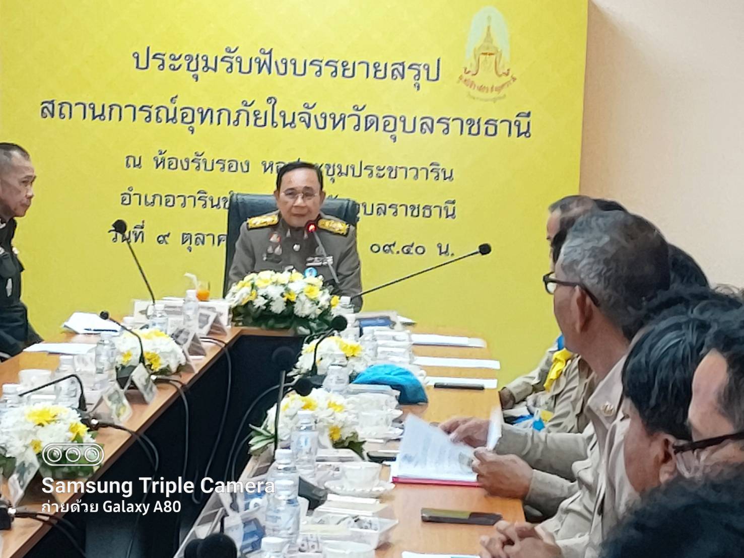 ในการนี้ พลเอก ประยุทธ์ จันทร์โอชา องคมนตรี ได้กล่าวถึงวัตถุประสงค์ และเชิญพระราชทานกระแสทรงห่วงใยของพระบาทสมเด็จพระเจ้าอยู่หัว และสมเด็จพระนางเจ้า ฯ พระบรมราชินี พร้อมเชิญสิ่งของพระราชทานให้ผู้ประสบอุทกภัย จำนวน 2,497 ชุด และสิ่งของพระราชทานสำหรับเด็ก 20 ชุด พร้อมลงพื้นที่มอบสิ่งของพระราชทานแก่ประชาชนในพื้นที่อำเภอวารินชำราบ จำนวน 3 ชุด