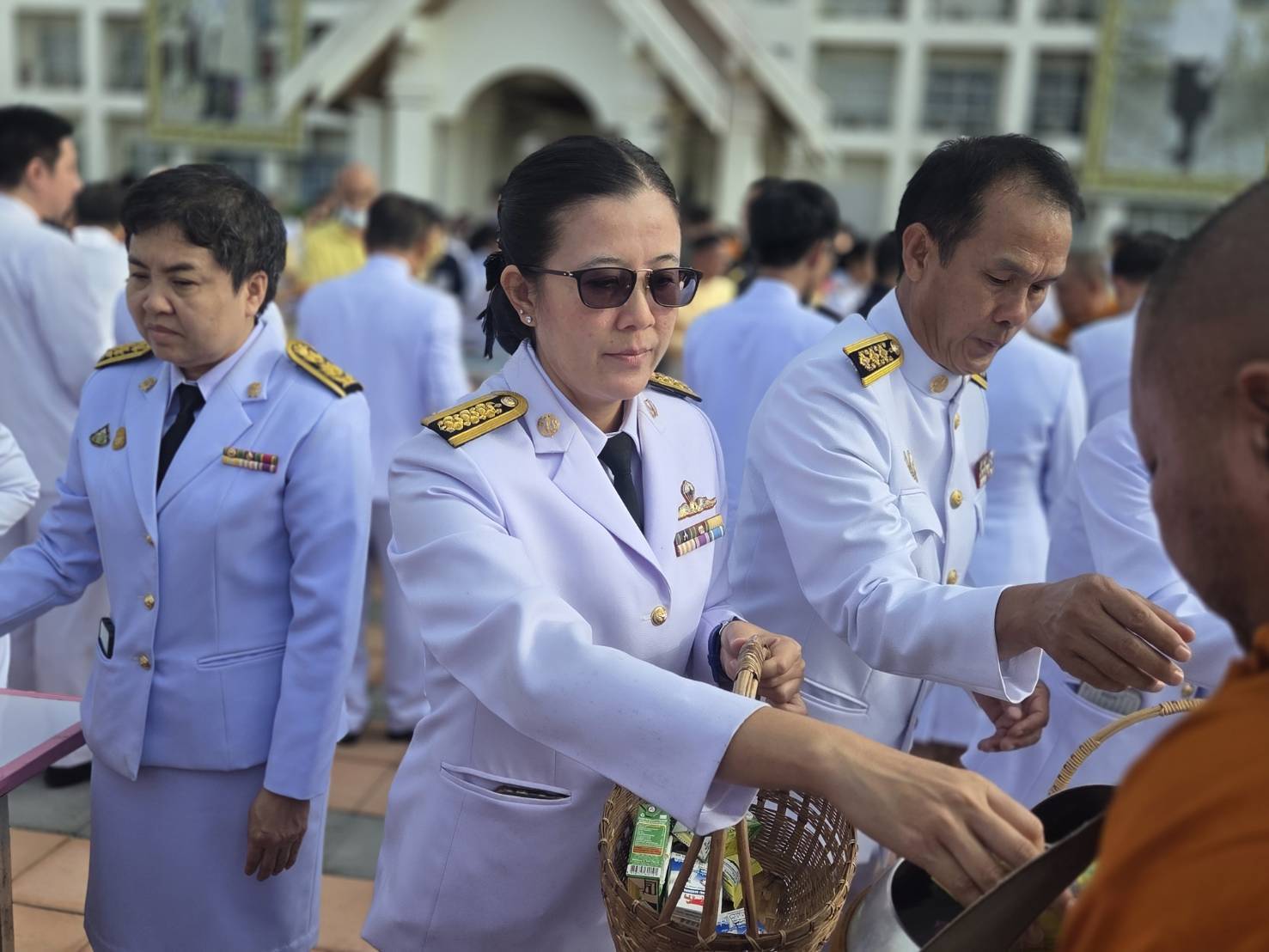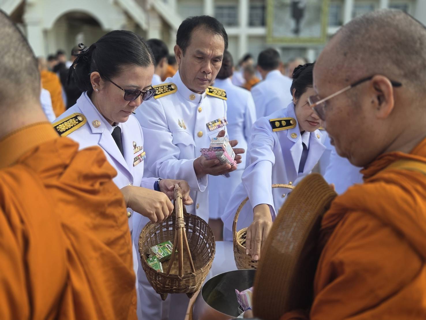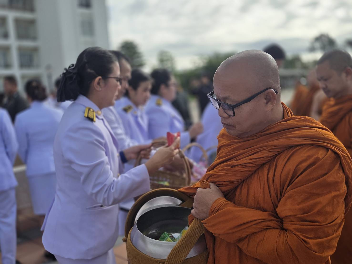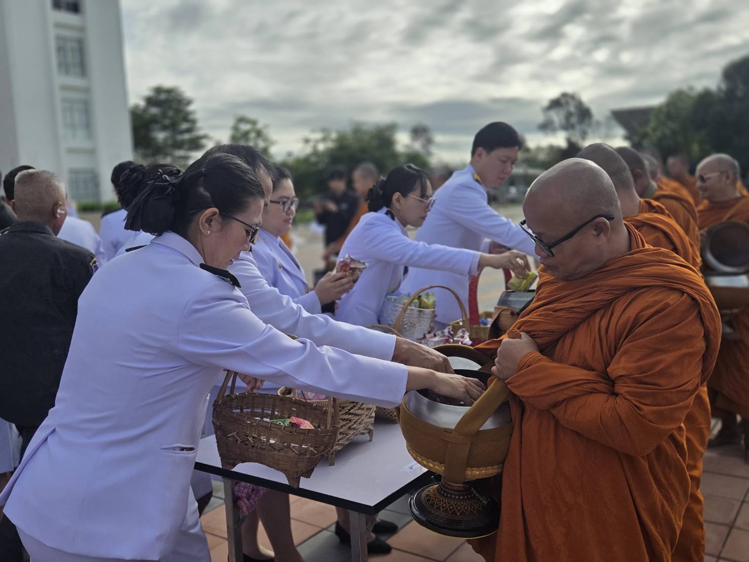 ร่วมพิธีสวดพระพุทธมนต์ ทำบุญตักบาตร ถวายพระราชกุศล เนื่องในวันคล้ายวันสวรรคต พระบาทสมเด็จพระบรมชนกาธิเบศร มหาภูมิพลอดุลยเดชมหาราช บรมนาถบพิตร ณ บริเวณศาลาเรือนไทย