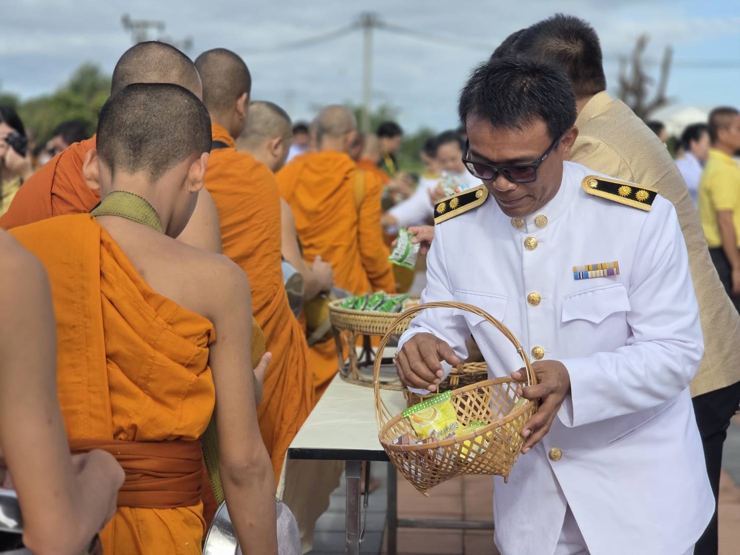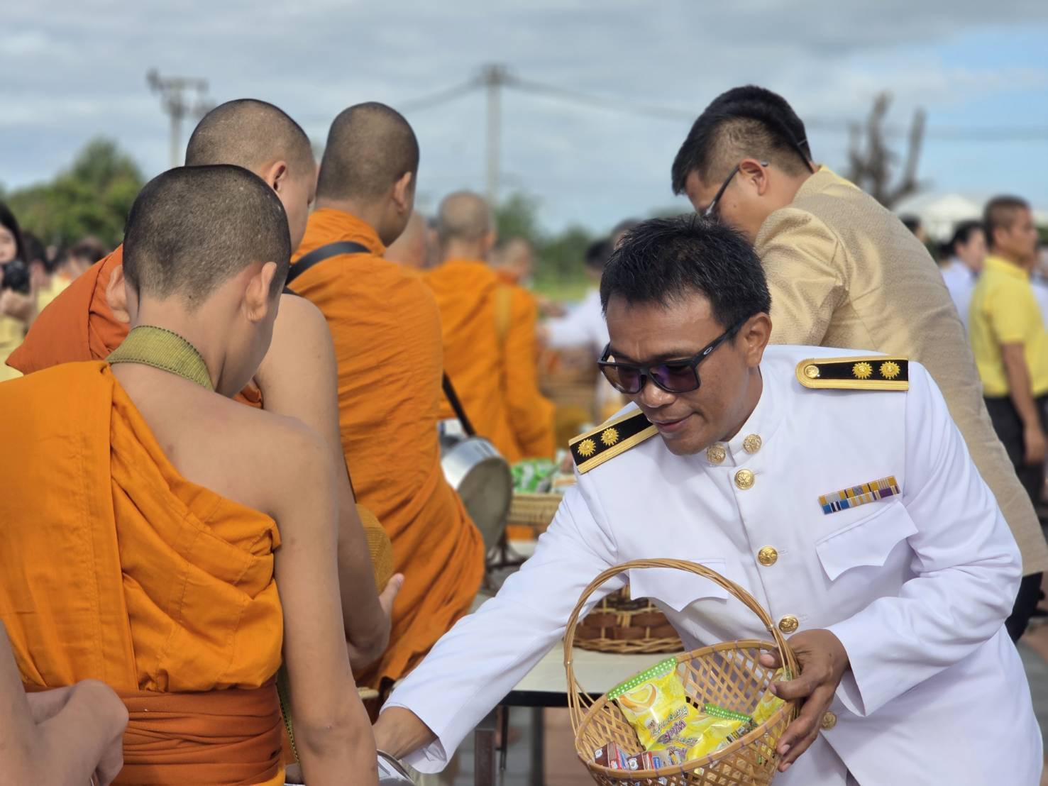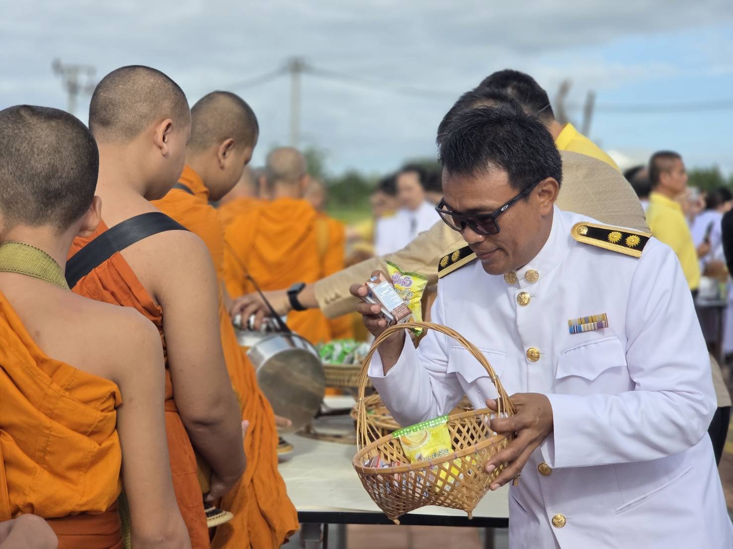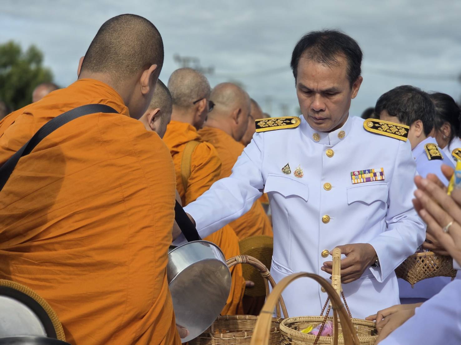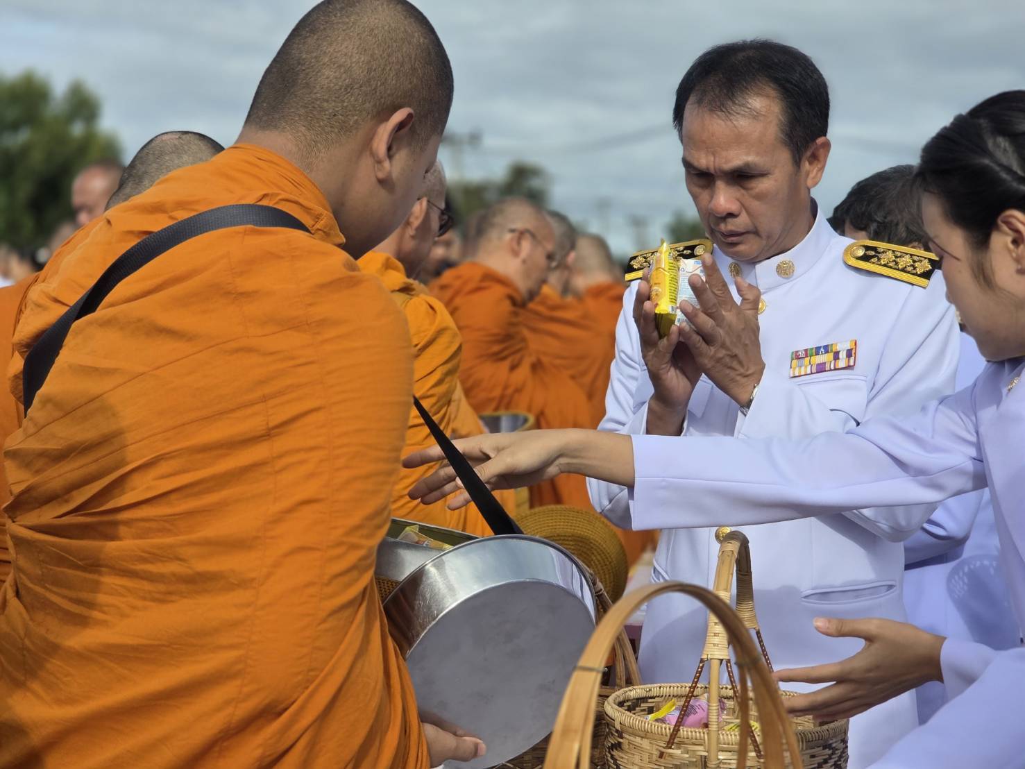 ร่วมพิธีสวดพระพุทธมนต์ ทำบุญตักบาตร ถวายพระราชกุศล เนื่องในวันคล้ายวันสวรรคต พระบาทสมเด็จพระบรมชนกาธิเบศร มหาภูมิพลอดุลยเดชมหาราช บรมนาถบพิตร ณ บริเวณศาลาเรือนไทย