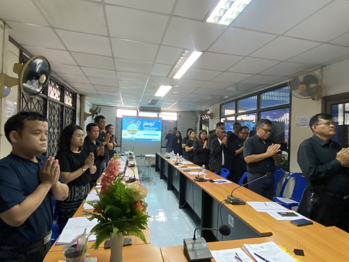 ก่อนเริ่มการประชุม ประมงจังหวัดอุบลราชธานี นำข้าราชการ ลูกจ้างประจำ และพนักงานราชการ จุดธูปเทียนบูชาพระรัตนตรัย นำสวดมนต์ไหว้พระ ทำสมาธิ พร้อมรับชมคลิปวิดีโอหลักธรรมะ สารคดีเฉลิมพระเกียรติฯ กรมประมง พร้อมร่วมยืนสงบนิ่งน้อมถวายความอาลัย สมเด็จพระนางเจ้าสิริกิติ์ พระบรมราชินีนาถ พระบรมราชนนีพันปีหลวง
