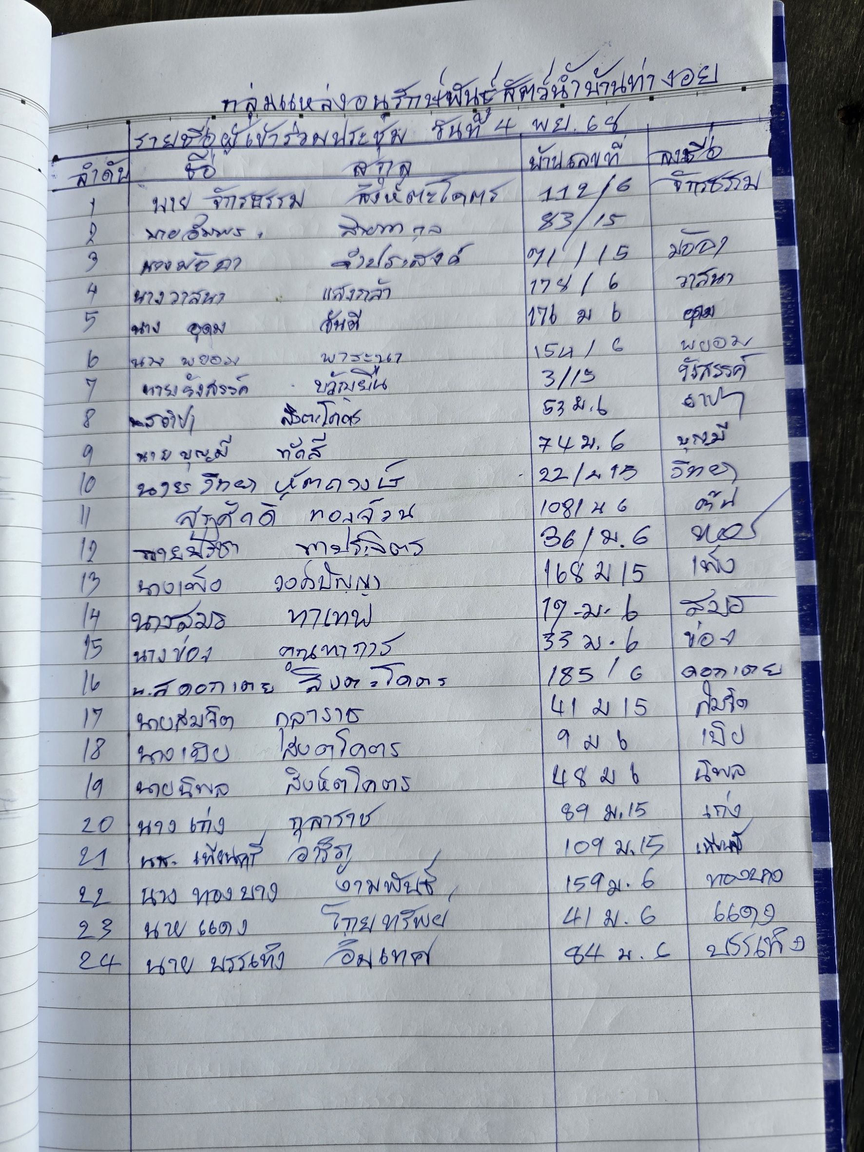 วันที่ 4 พฤศจิกายน 2569 นางสุภาพร? วัฒนสิทธิ์ ประมงอำเภอวารินชำราบ ลงพื้นที่สำรวจข้อมูล ความต้องการขององค์กรชุมชนประมงท้องถิ่นที่จะเข้าร่วมโครงการสร้างความเข้มแข็ง กลุ่มการผลิตด้านประมงประจำปีงบประมาณ ?2570? ณ ศาลาการเปรียญ วัดบ้านท่างอย ตำบลบุ่งหวาย อำเภอวารินชำราบ? จังหวัดอุบลราชธานี? โดยที่ประชุม กลุ่มองค์กรชุมชนประมงท้องถิ่น กลุ่มแหล่งอนุรักษ์พันธุ์สัตว์น้ำบ้านท่างอย ได้ร่วมกันเสนอโครงการ และจัดทำรายละเอียดโครงการเพื่อจัดทำคำขอ เพื่อขอรับการสนับสนุนงบประมาณ (เงินอุดหนุน)? ตามโครงการ สร้างความเข้มแข็ง กลุ่มการผลิตด้านประมง ประจำปีงบประมาณ 2570 ต่อไป