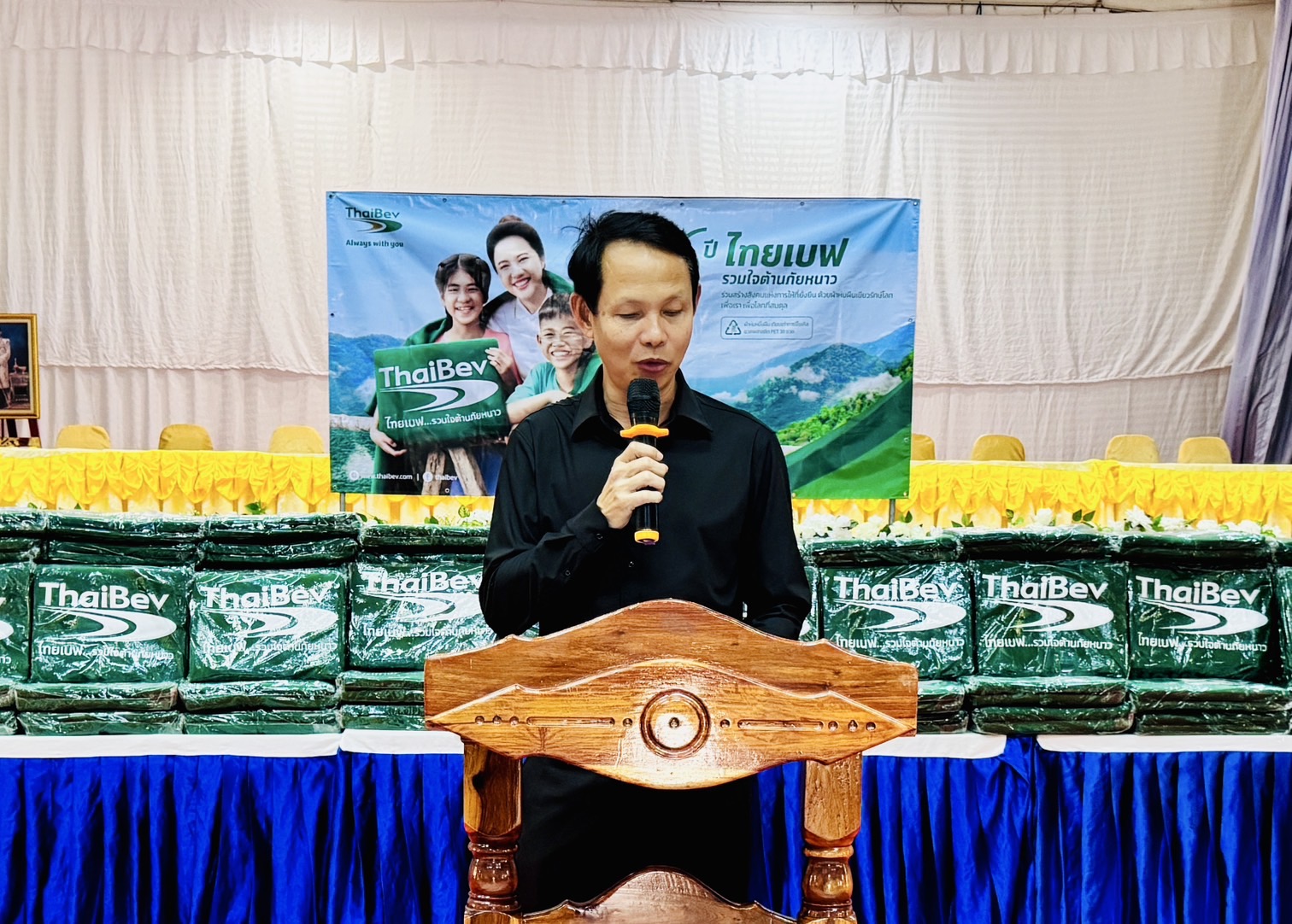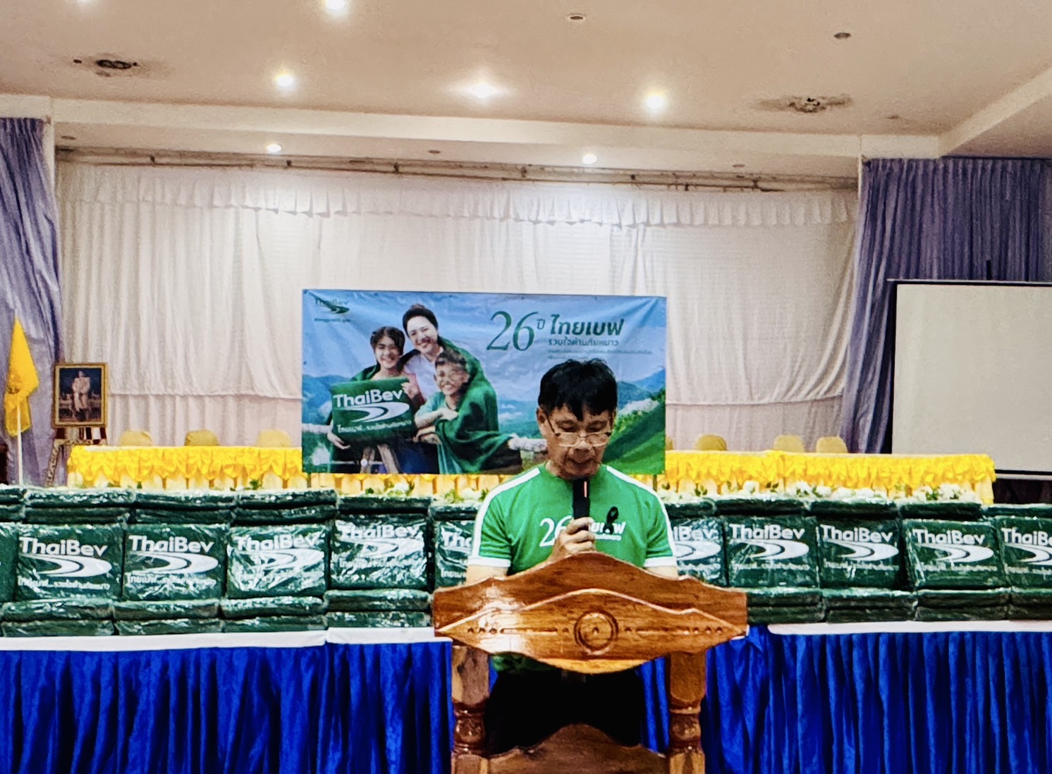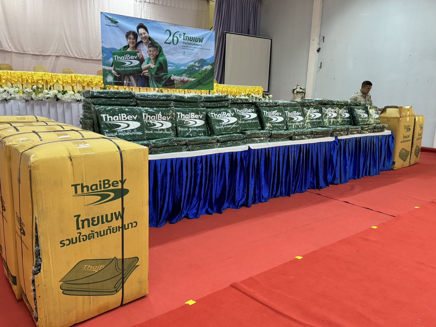 โดยมี นายอุทัย อรัมสัจจากูล นายอำเภอสิรินธร กล่าวต้อนรับผู้แทนบริษัท ไทยเบฟเวอเรจ จำกัด (มหาชน)  พร้อมนำหัวหน้าส่วนราชการ หัวหน้าหน่วยงาน ตำรวจ ทหาร ร่วมกับตัวแทนจากบริษัท ไทยเบฟเวอเรจ จำกัด (มหาชน) ร่วมมอบผ้าห่มกันหนาวให้ชาวอำเภอสิรินธร ในครั้งนี้