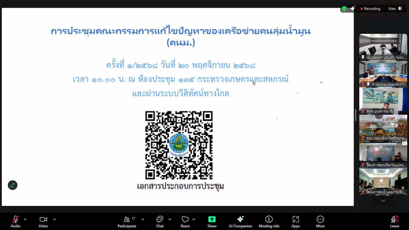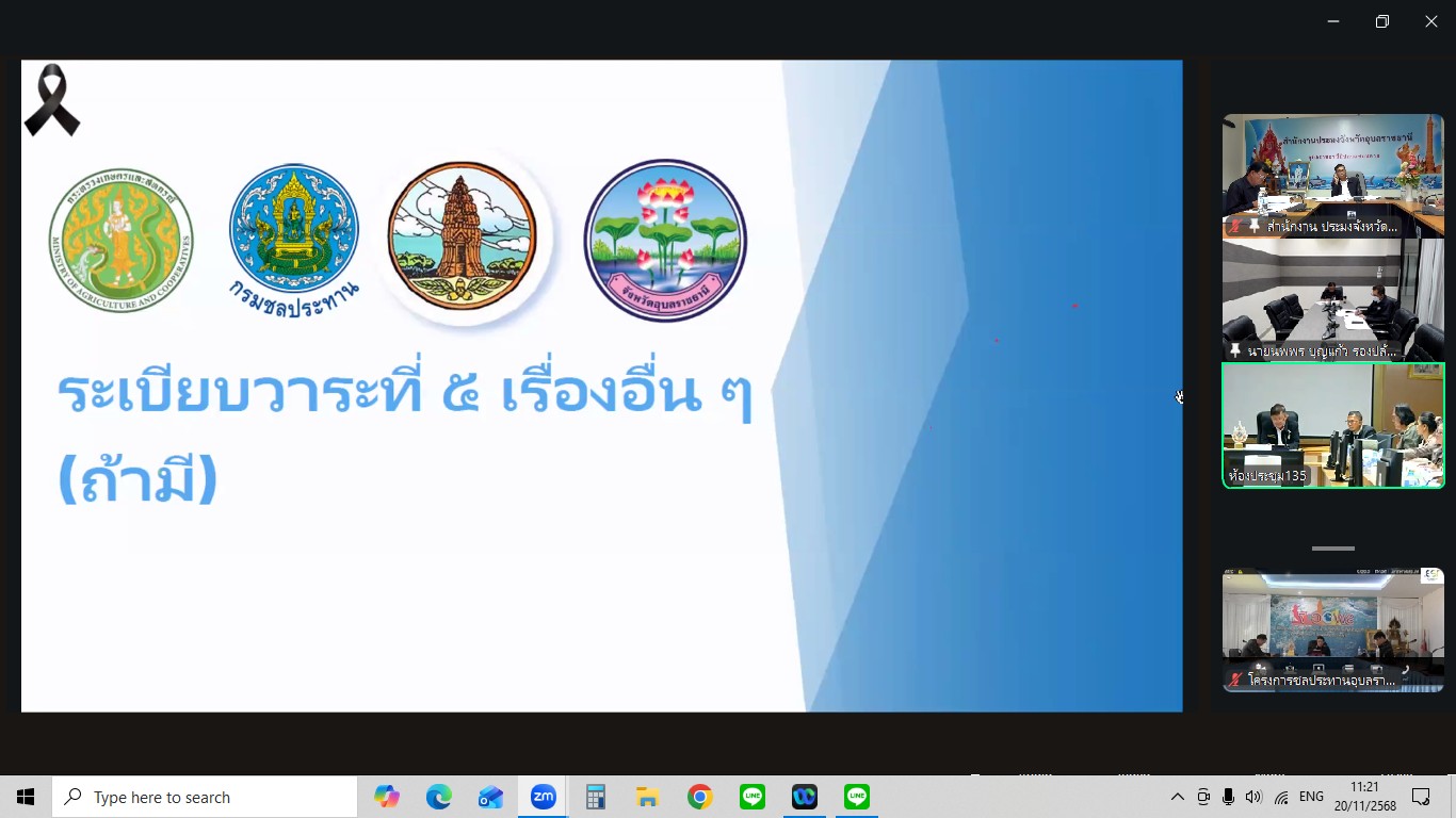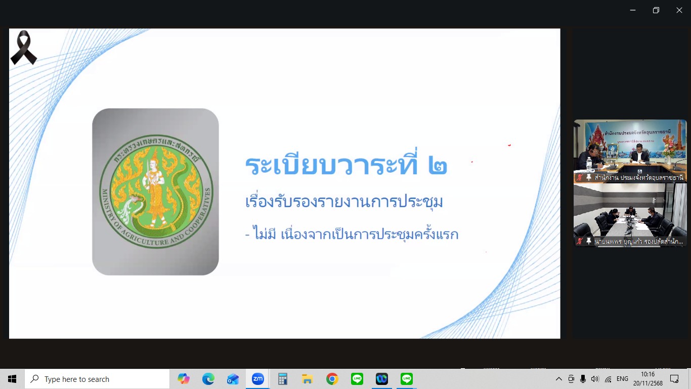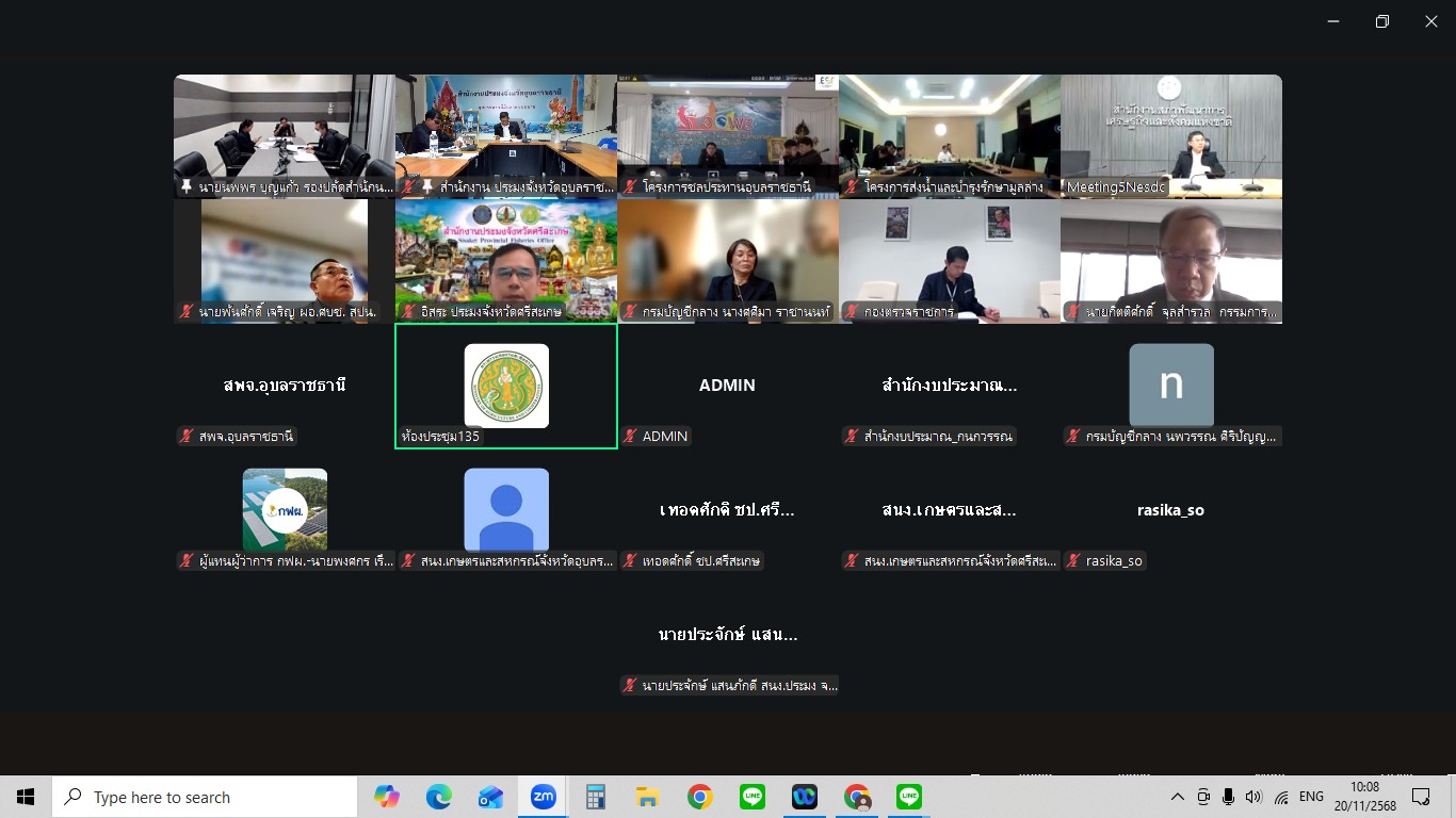 วันพฤหัสบดีที่ 20 พฤศจิกายน พ.ศ. 2568 เวลา 10.00 น. ณ ห้องประชุม Understanding สำนักงานประมงจังหวัดอุบลราชธานี