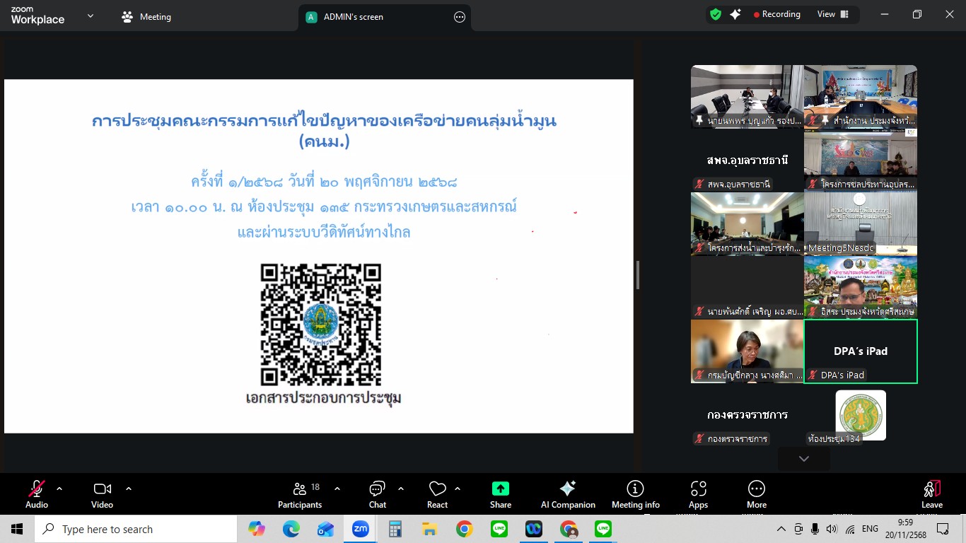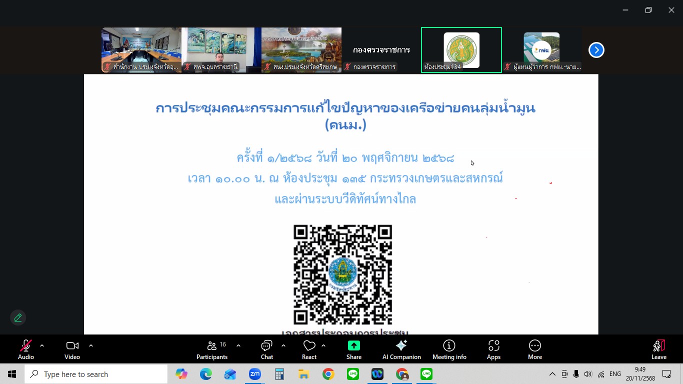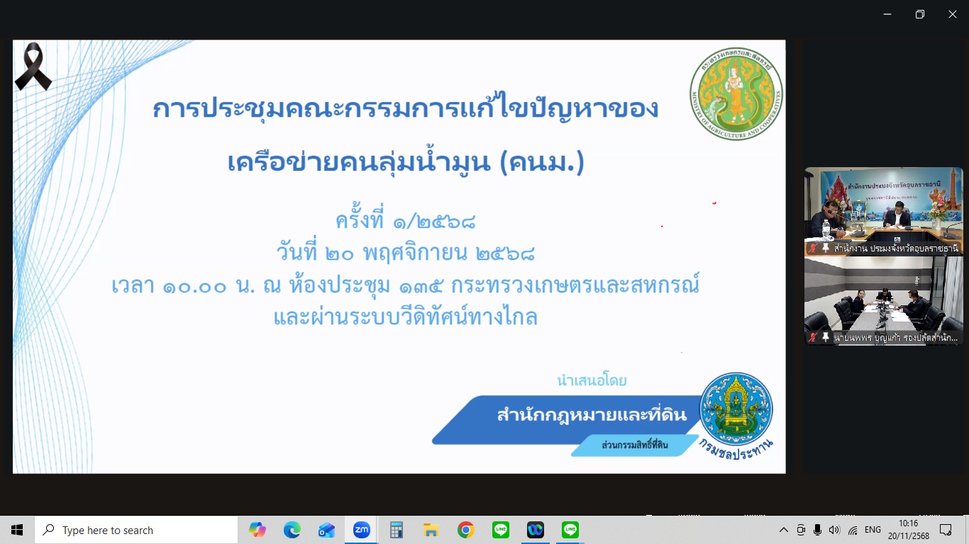 นายสุริยันต์ วรรณวงษ์ ประมงจังหวัดอุบลราชธานี พร้อมด้วย นายสุนทร รุ่งเรือง หัวหน้ากลุ่มบริหารจัดการด้านการประมง ร่วมการประชุมคณะกรรมการแก้ไขปัญหาความเดือดร้อนของเครือข่ายคนลุ่มน้ำมูน (คนม.) ครั้งที่ 1/2568 ผ่านช่องทางระบบสื่อสารออนไลน์ Zoom meeting โดยมี นายชูวิทย์ พิทักษ์พรพัลลภ ที่ปรึกษารัฐมนตรีว่าการกระทรวงเกษตรและสหกรณ์ เป็นประธานการประชุมครั้งนี้