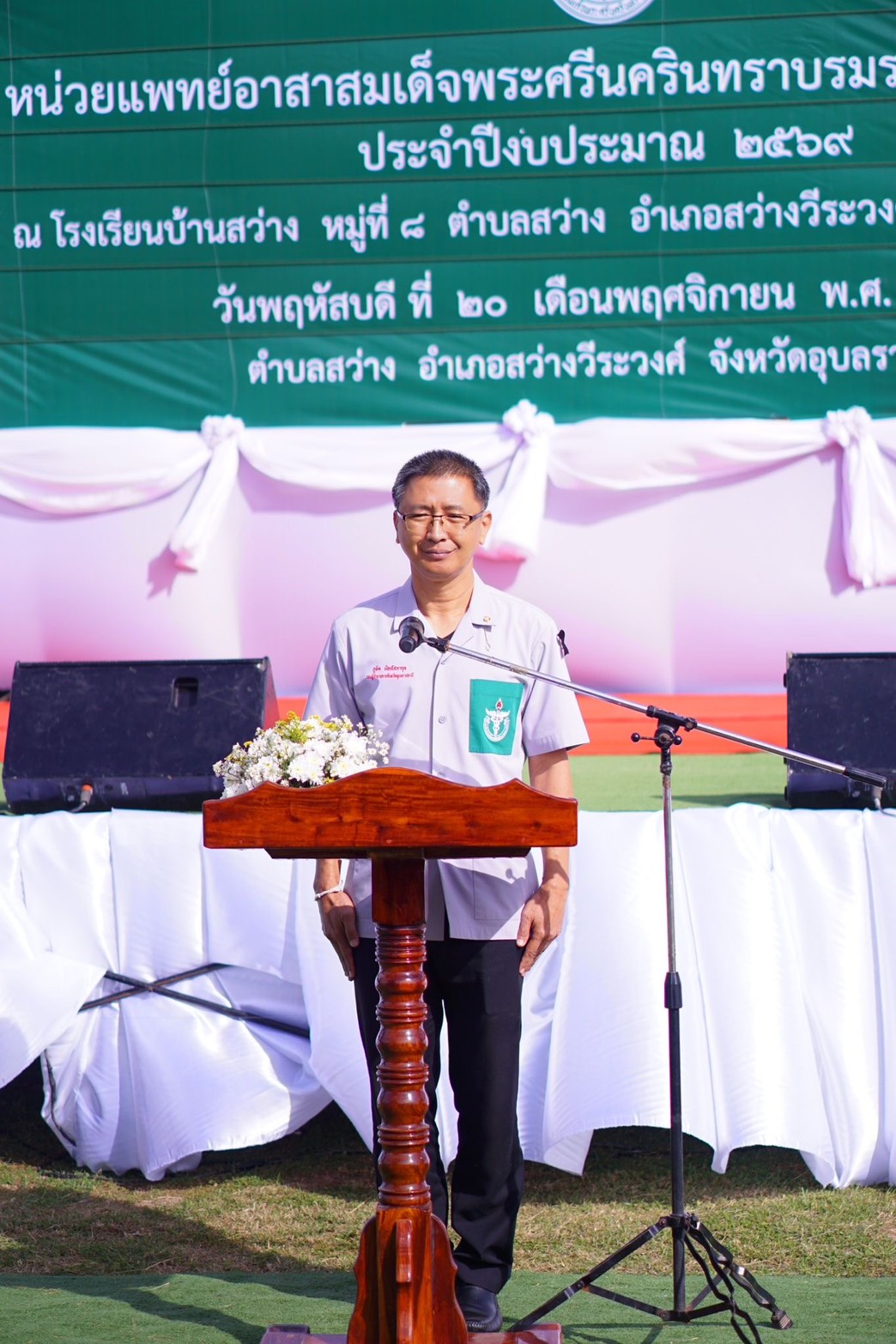 วันพฤหัสบดีที่ 20 พฤศจิกายน 2568 เวลา 08.30 น. นางอัจฉราภรณ์ วงษ์ไกร ประมงอำเภอสว่างวีระวงศ์ พร้อมด้วยนายเอกชัย ปัญญาแก้ว เจ้าพนักงานประมงปฏิบัติงาน นางสาวรัตติยากร ศรสิงห์ เจ้าพนักงานประมงปฏิบัติงาน กลุ่มบริหารจัดการด้านการประมง สำนักงานประมงจังหวัดอุบลราชธานี โครงการแพทย์พระราชทานมูลนิธิแพทย์อาสาสมเด็จพระศรีนครินทราบรมราชชนนี (พอ.สว.) และกิจกรรมสำรวจปัญหาและ ความต้องการเชิงพื้นที่ เพื่อขับเคลื่อนแผนพัฒนา จังหวัด ประจำปีงบประมาณ พ.ศ. 2569 ณ โรงเรียนบ้านสว่าง หมู่ที่ 8 ตำบลสว่าง อำเภอสว่างวีระวงศ์ จังหวัดอุบลราชธานี เพื่อให้ความช่วยเหลือประชาชนในพื้นที่ห่างไกลให้ได้รับบริการด้านการแพทย์และสาธารณสุข พร้อมทั้งสามารถเข้าถึงการให้บริการในด้านอื่นๆจากส่วนราชการ ในเขตพื้นที่จังหวัดอุบลราชธานี