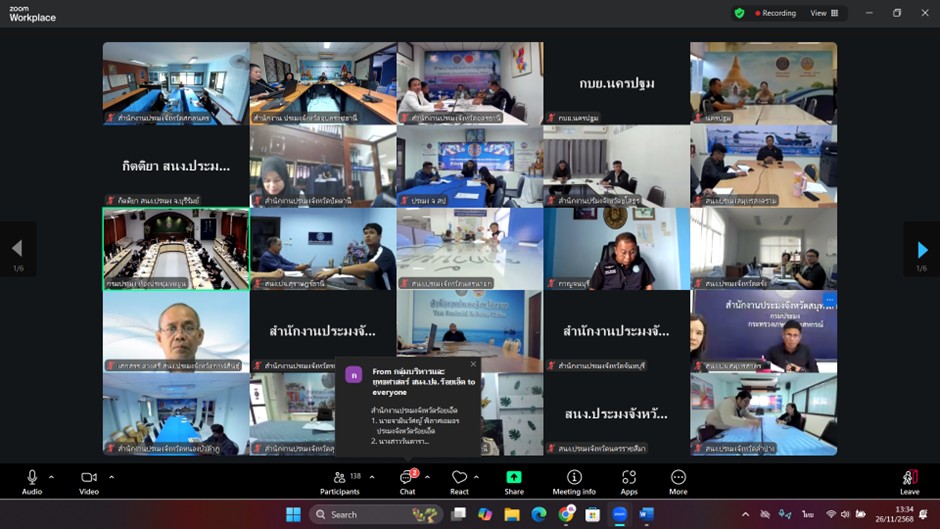การประชุมดังกล่าวจัดขึ้น ณ ห้องประชุมพะยูน ชั้น 7 อาคารจุฬาภรณ์ กรมประมง และผ่านระบบ Video Conference ด้วยโปรแกรม Zoom cloud meeting โดยมี นายอำนวย คงพรหม ผู้ตรวจราชการกรมประมง เป็นประธานการประชุม