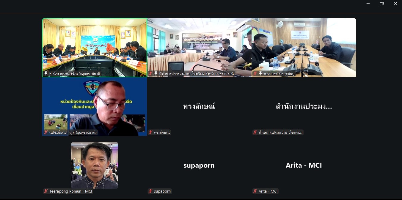วันที่ 3 ธันวาคม 2568 เวลา 09.30 น. นายสุริยันต์ วรรณวงษ์ ประมงจังหวัดอุบลราชธานี พร้อมด้วย นายสุนทร รุ่งเรือง หัวหน้ากลุ่มบริหารจัดการด้านการประมง นางสาวศิริรัตน์ อุทัยวัฒน์ ประมงอำเภอศรีเมืองใหม่ รักษาการหัวหน้ากลุ่มพัฒนาและส่งเสริมอาชีพการประมง และเจ้าหน้าที่สำนักงานประมงจังหวัดอุบลราชธานี ร่วมประชุมเตรียมความพร้อมในการจัดงาน “กินปลาฮักโขง ซอฟท์พาวเวอร์จากสายน้ำ” ครั้งที่ 5/2568 ณ ห้องประชุมศรีสิงหเทพ ชั้น 4  ศาลากลางจังหวัดอุบลราชธานี และผ่านระบบ Zoom Cloud Meeting โดยมีร้อยตรีสรมงคล มงคละสิริ รองผู้ว่าราชการจังหวัดอุบลราชธานี เป็นประธานในที่ประชุม พร้อมด้วยหัวหน้าส่วนราชการ ผู้แทนสมาคมสถาบันชุมชนลุ่มน้ำโขง (MCI) เครือข่ายอนุรักษ์พันธุ์ปลาแม่น้ำโขง–แม่น้ำมูลตอนล่าง และหน่วยงานที่ร่วมดำเนินการ เข้าร่วมประชุมอย่างพร้อมเพรียง