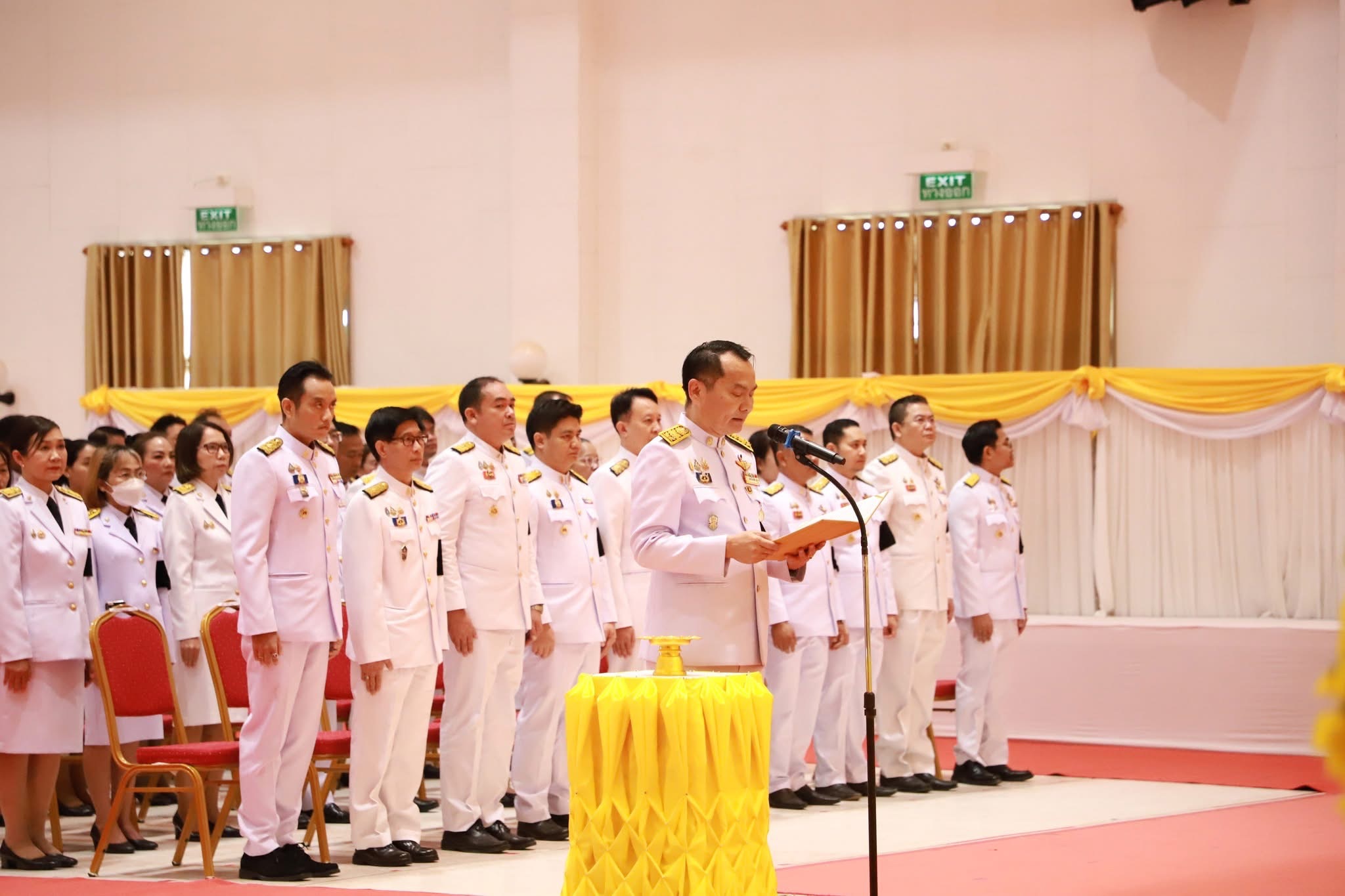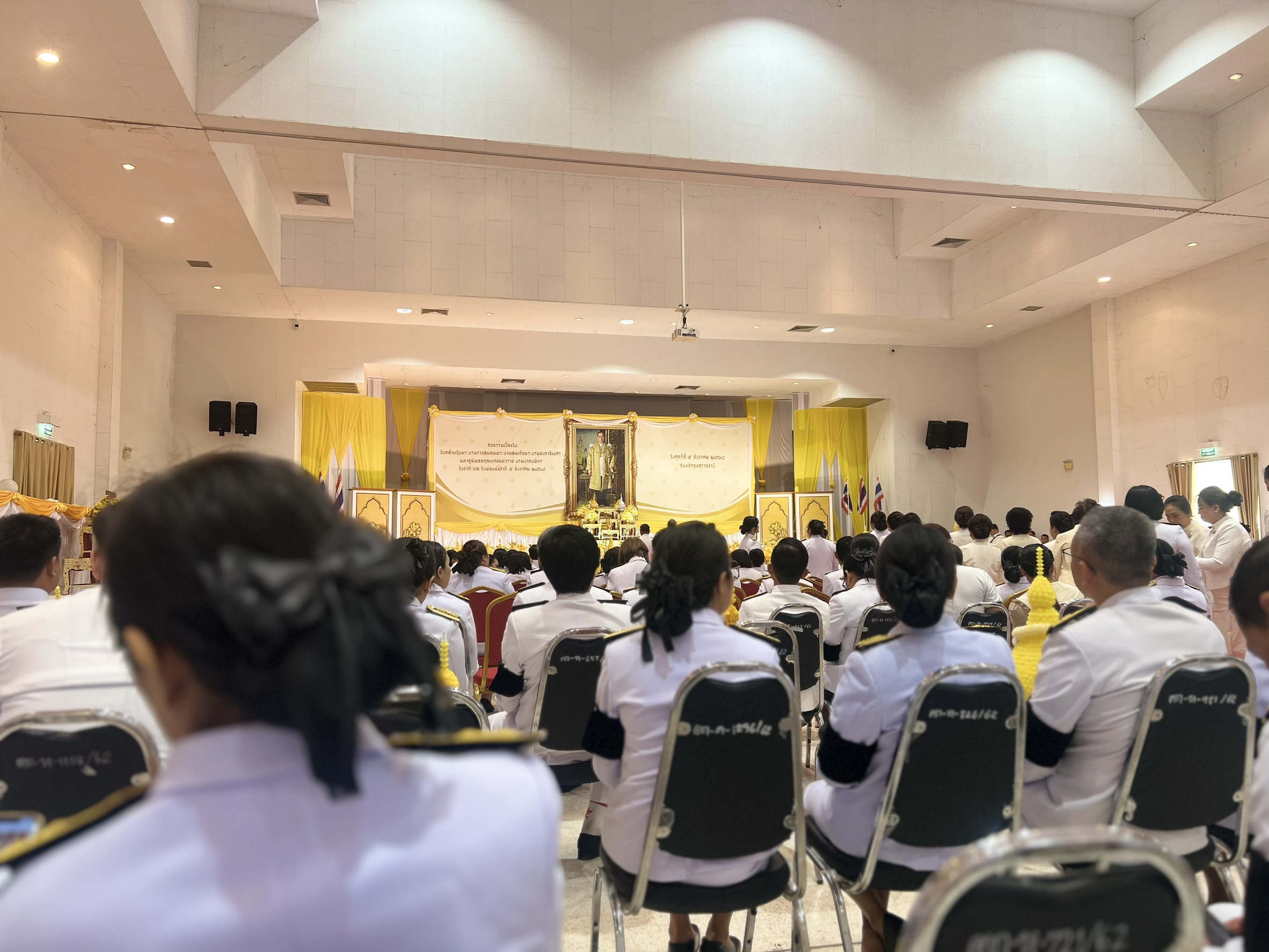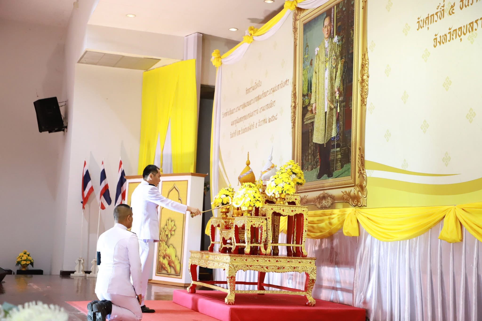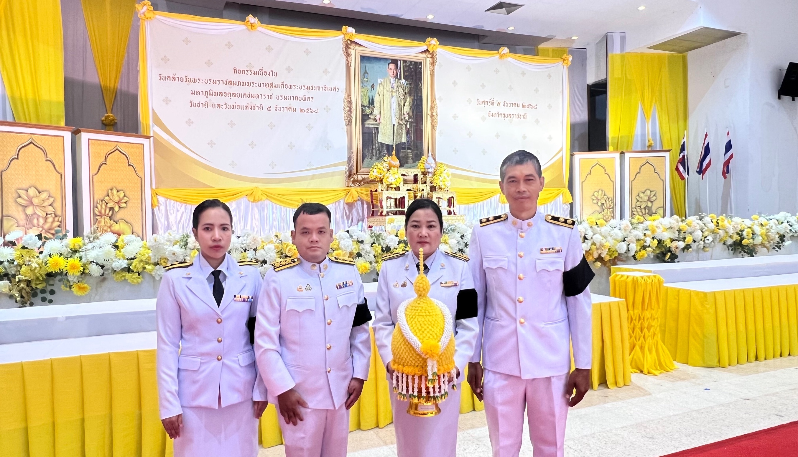 วันที่ 5 ธันวาคม 2568 เวลา 09.00 น. นายวัชรเกียรติ สวัสดิรักษา หัวหน้ากลุ่มบริหารและยุทธศาสตร์ นางสาวนิภาพร ทองแปลง ตำแหน่ง เจ้าพนักงานธุรการชำนาญงาน ว่าที่ ร.ต.วุฒิชาติ เชื้อชม ตำแหน่ง เจ้าพนักงานประมง และนางสาวเสาวภรณ์ ภูมิคำ ตำแหน่ง เจ้าพนักงานประมง ร่วมพิธีวางพานพุ่มดอกไม้ถวายราชสักการะ ในวันคล้ายวันพระบรมราชสมภพ พระบาทสมเด็จพระบรมชนกาธิเบศร มหาภูมิพลอดุลยเดชมหาราช บรมนาถบพิตร วันชาติ และวันพ่อแห่งชาติ 5 ธันวาคม 2568 ณ หอประชุมจังหวัดอุบลราชธานี ศาลากลางจังหวัดอุบลราชธานี โดยมีนายณรงค์ เทพเสนา ผู้ว่าราชการจังหวัดอุบลราชธานี เป็นประธานในพิธี