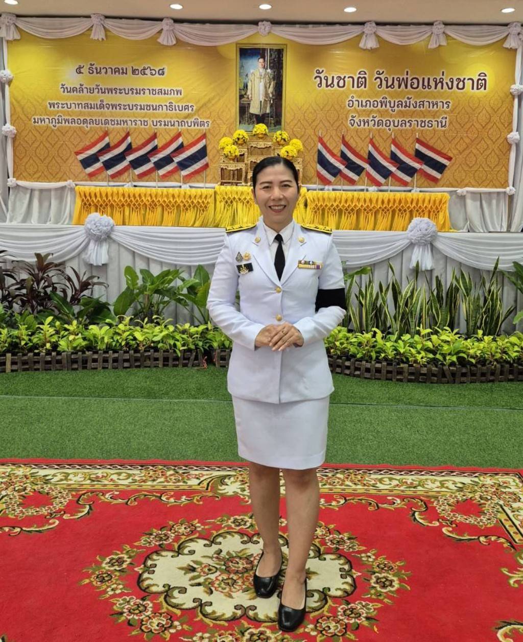 นางสาวบุญเลี้ยง ทองหุล ประมงอำเภอพิบูลมังสาหาร ร่วมกิจกรรมเนื่องในวันคล้ายวันพระบรมราชสมภพพระบาทสมเด็จพระบรมชนกาธิเบศรมหาภูมิพลอดุลยเดชมหาราช บรมนาถบพิตร วันชาติ และวันพ่อแห่งชาติ 5 ธันวาคม 2568 เพื่อน้อมสำนึกในพระมหากรุณาธิคุณ แสดงออกถึงความจงรักภักดี