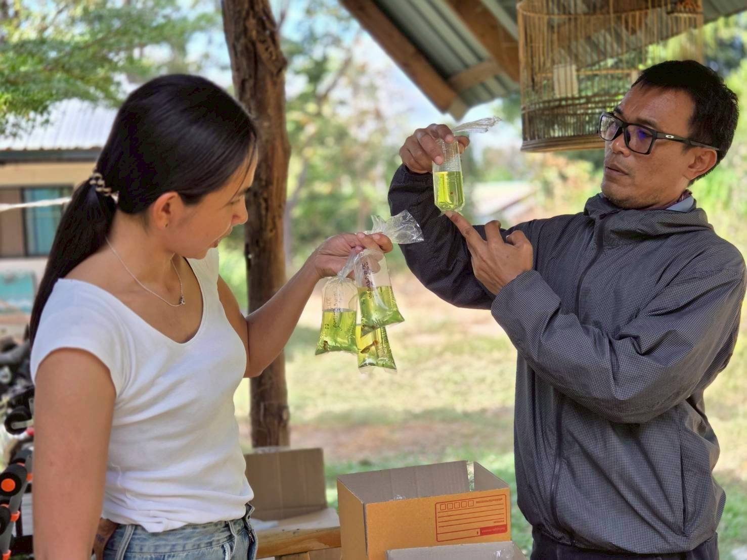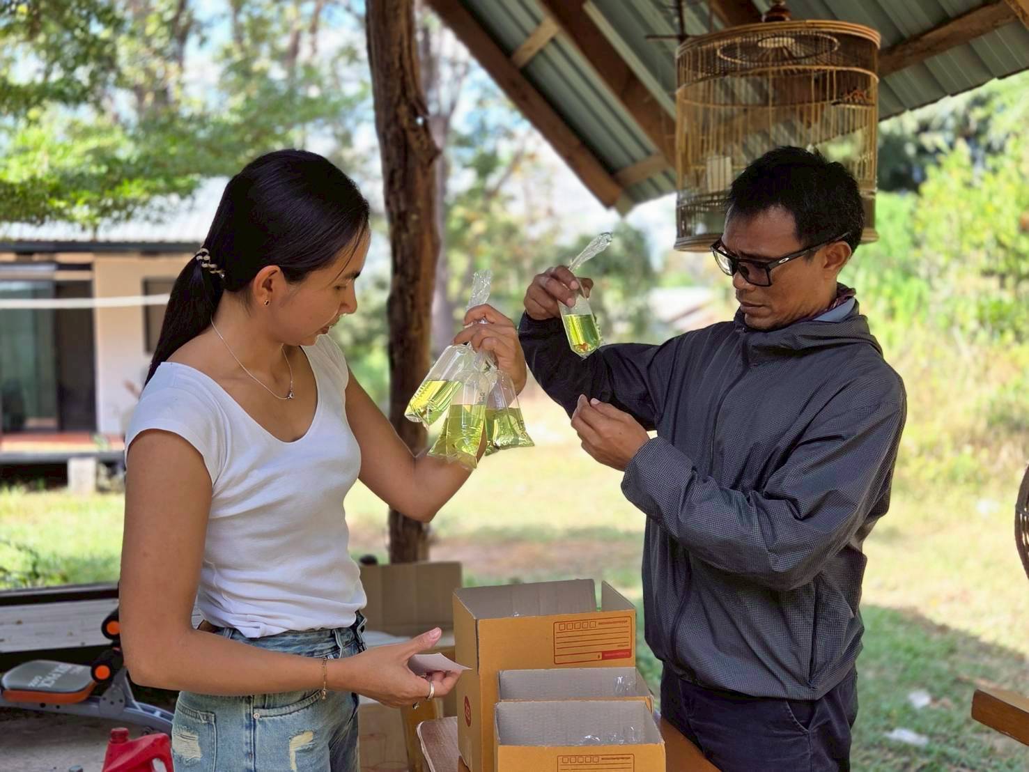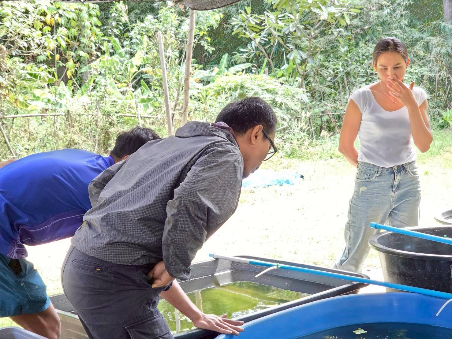 นางสาวศิริรัตน์ อุทัยวัฒน์ ประมงอำเภอศรีเมืองใหม่ รักษาการในตำแหน่งหัวหน้ากลุ่มพัฒนาและส่งเสริมอาชีพการประมง พร้อมด้วย นายณัฐวัตร นาจกระโทก นักวิชาการประมง ลงพื้นนำส่งบัตรทะเบียนผู้ประกอบการ ทบ.2 และเยี่ยมชมสถานประกอบการเลี้ยงปลาหางนกยูง ณ ฟาร์มนางสาวกนกพร พิมพ์โลโก้ ตำบลนาคำ อำเภอศรีเมืองใหม่ จังหวัดอุบลราชธานี