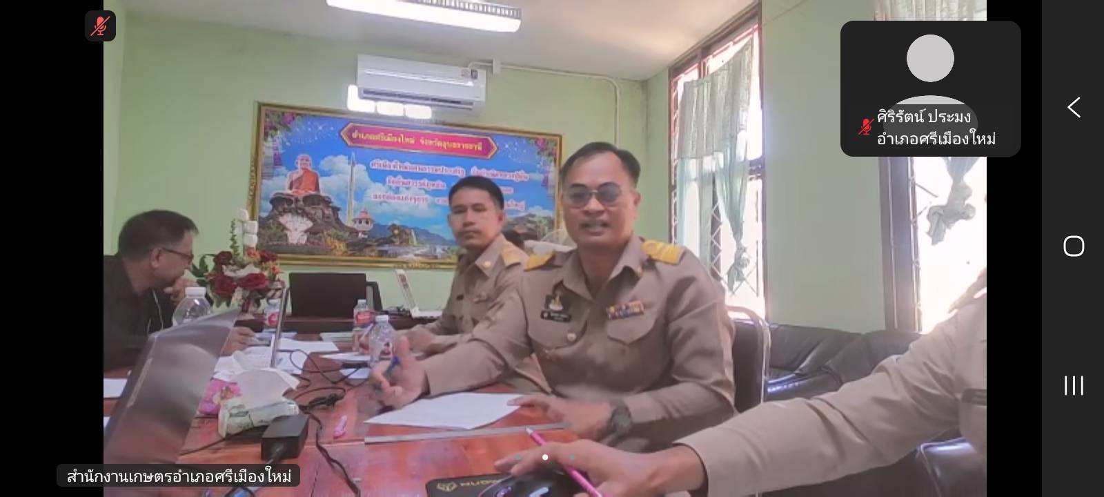 วันที่ 15 ธันวาคม 2568 เวลา 09.00 น. นางศิริรัตน์ อุทัยวัฒน์ ประมงอำเภอศรีเมืองใหม่ ร่วมประชุมการประชุมคณะทำงานขับเคลื่อนงานการเกษตรระดับอำเภอ (Single Command District) SCD เพื่อคัดเลือกหมู่บ้านพัฒนาสินค้าเกษตรมูลค่าสูง ผ่านช่องทางออนไลน์ Application Zoom โดยมีนายรัฐธนินท์ อัมมินทร เกษตรอำเภอศรีเมืองใหม่ เป็นประธานในที่ประพชุม และนายยุทศาสตร์ แก่นพันธ์ นักวิเคราะห์นโยบายและแผนชำนาญการ ร่วมดำเนินการประชุม