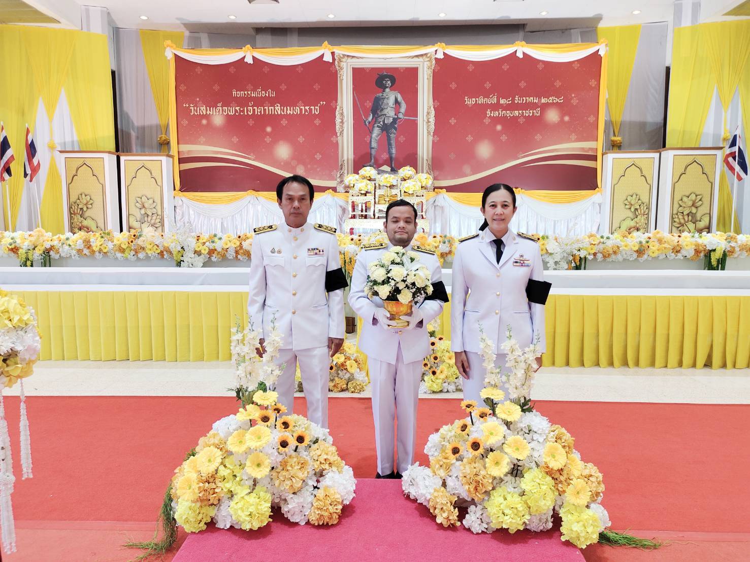 วันนี้ 28 ธันวาคม 2568 เวลา 07.00 น. นายสุริยันต์ วรรณวงษ์ ประมงจังหวัดอุบลราชธานี มอบหมายให้ นางสาวศิริรัตน์ อุทัยวัฒน์ ประมงอำเภอศรีเมืองใหม่ รักษาการในตำแหน่งหัวหน้ากลุ่มพัฒนาและส่งเสริมอาชีพการประมง พร้อมด้วยนายวัชรเกียรติ สวัสดิรักษา หัวหน้ากลุ่มบริหารและยุทธศาสตร์ และนายลำพอง ตาทองพนักงานพัสดุ ส.3 ร่วมพิธีถวายราชสักการะและวางพานพุ่มดอกไม้สด เนื่องในวันสมเด็จพระเจ้าตากสินมหาราช เพื่อเทิดพระเกียรติและน้อมรำลึกในพระมหากรุณาธิคุณของพระองค์ ณ อาคารหอประชุมจังหวัดอุบลราชธาน โดยมีว่าที่ร้อยตรีกรกฎ ประเสริฐวงษ์ รองผู้ว่าราชการจังหวัดอุบลราชธานี เป็นประธาน